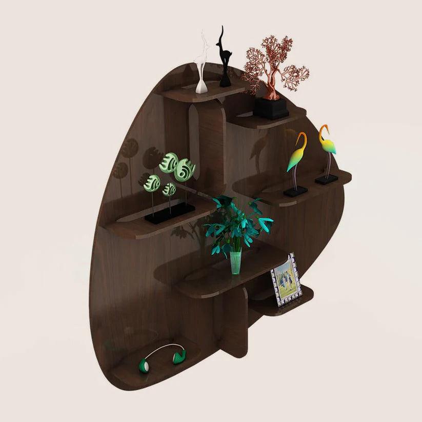 Abstract Shape Backlit Designer Wooden Wall Shelf / Book Shelf / Night Light, Walnut Finish