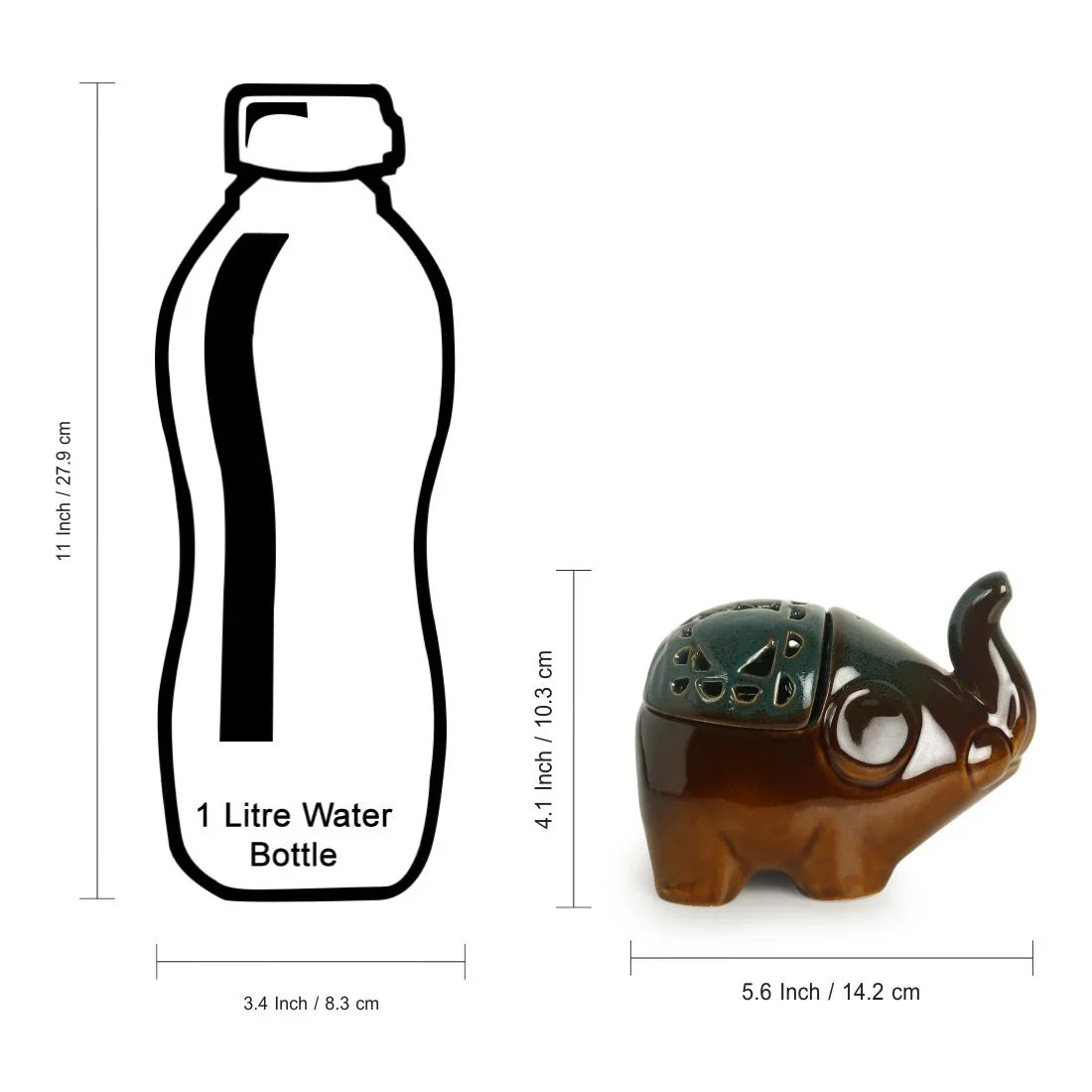 The 'Amber & Teal' table tea-light holder is ideal to be put up in your living rooms or bedrooms to illuminate and amplify your tabletops. This elephant-shaped set is elegantly handcrafted in ceramic in amber colour with floral cutworks and tints of magical teal on its top. The holder is perfect to illuminate your favourite space to create a relaxing atmosphere and ideal to be used as a decorative showpiece or as a gifting option for housewarming parties or festive seasons.