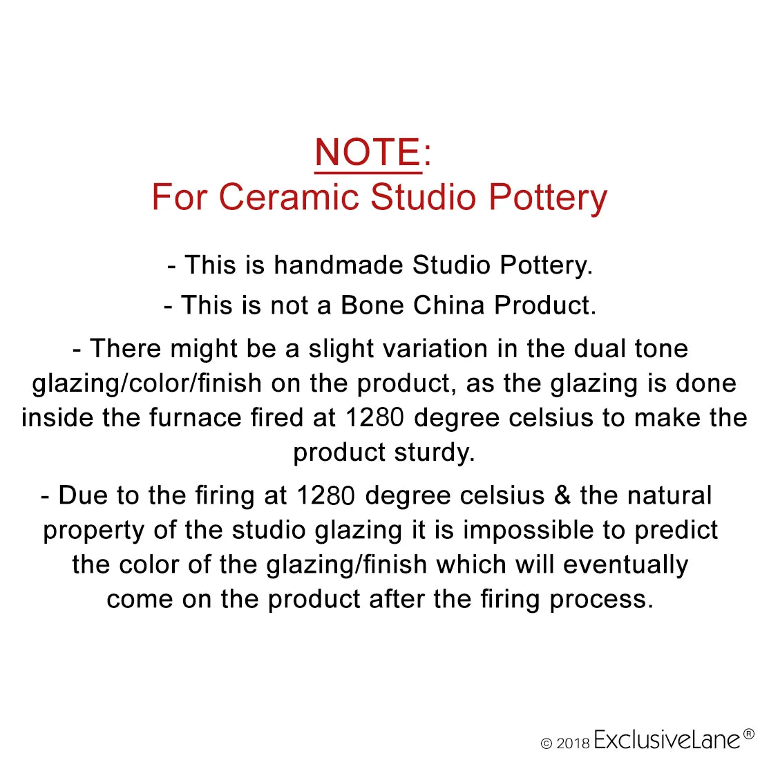 - There could be a slight variation in the dual tone glazing/color/finish on the product, as the glazing is done inside the furnace fired at 1280 degree celsius to make the product sturdy and due to the natural property of the studio glazing it is impossible to predict the color of the glazing/finish which will eventually come on the product after the firing process.