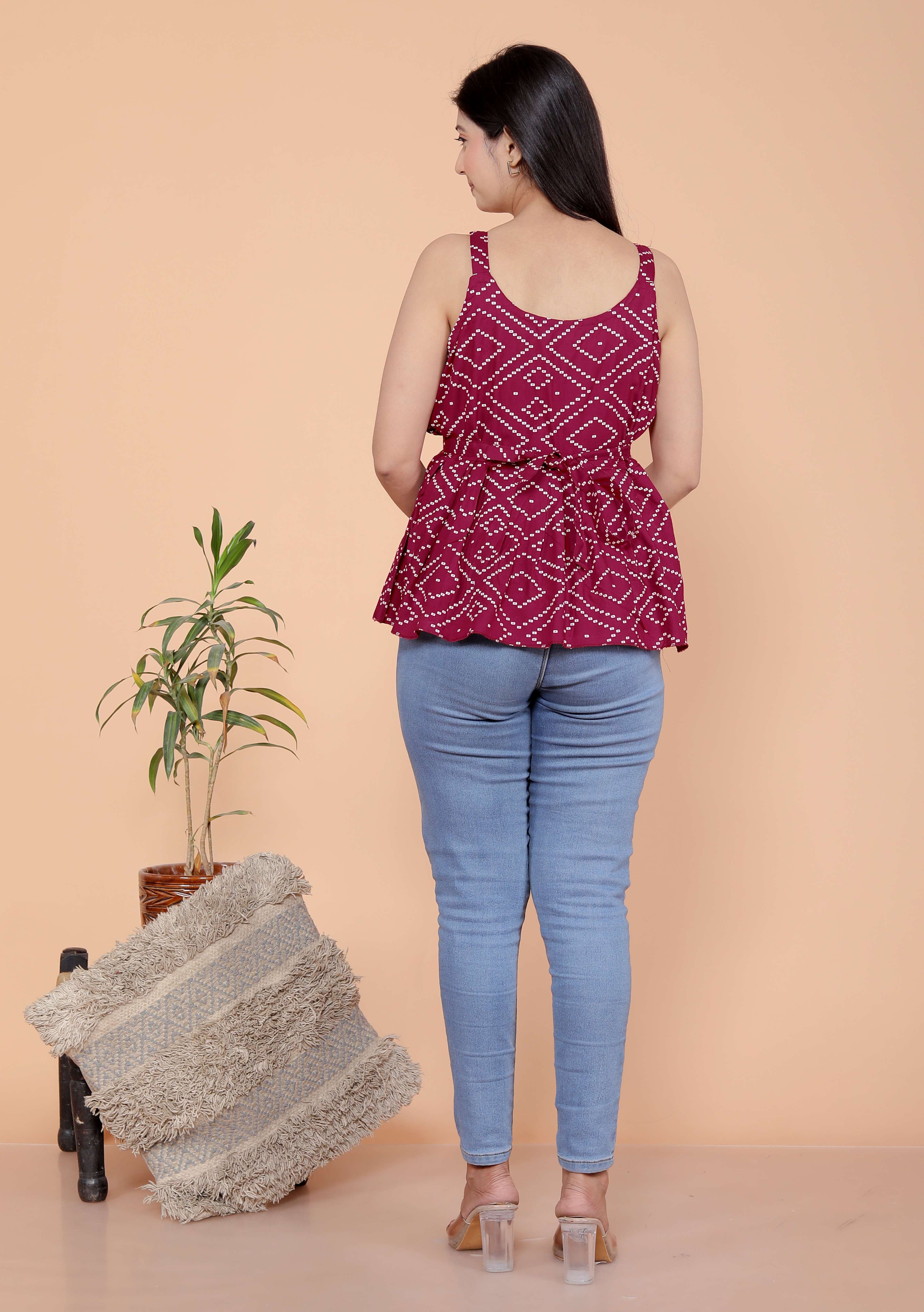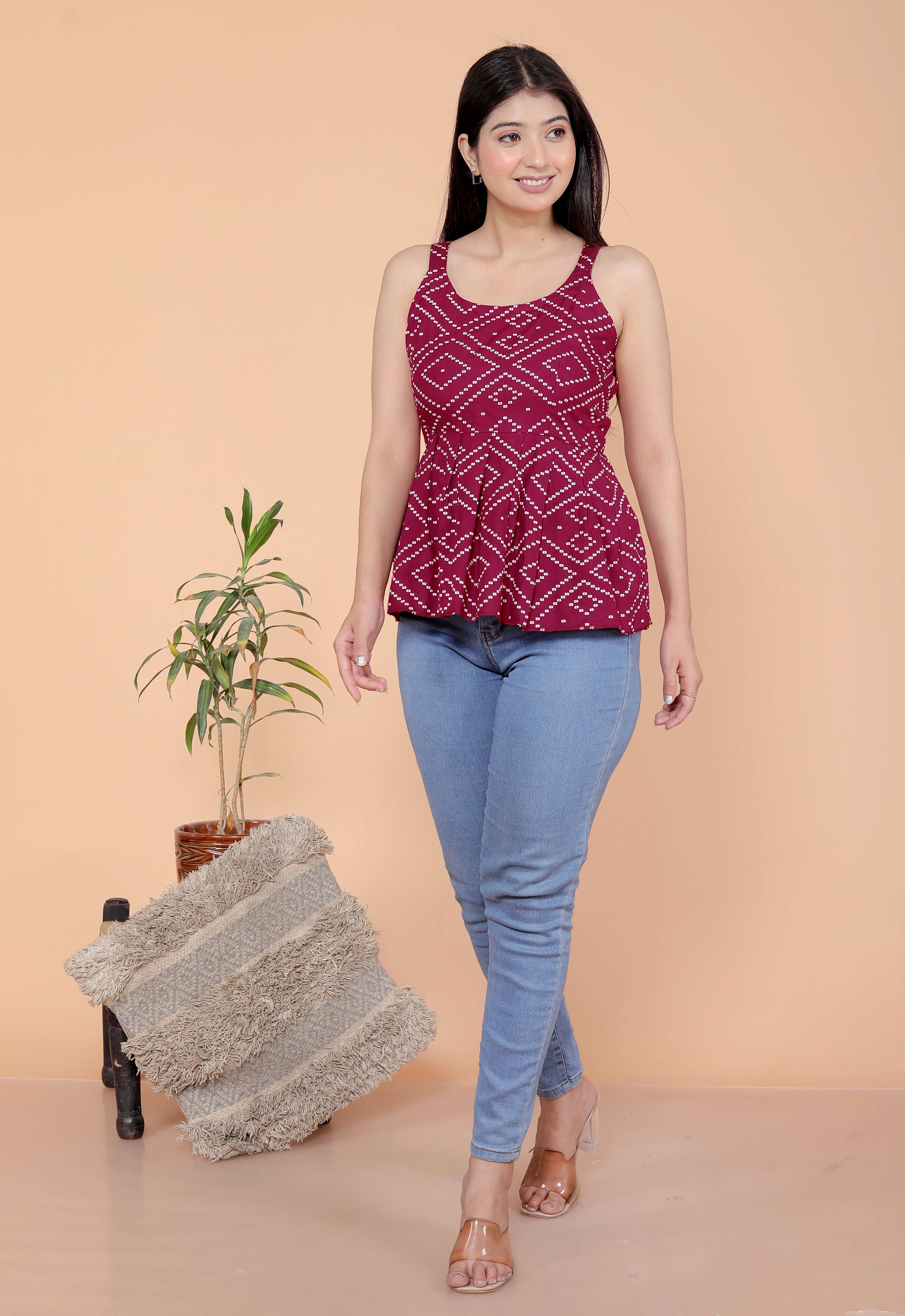 Premium cotton sleeveless kurti with modern design.