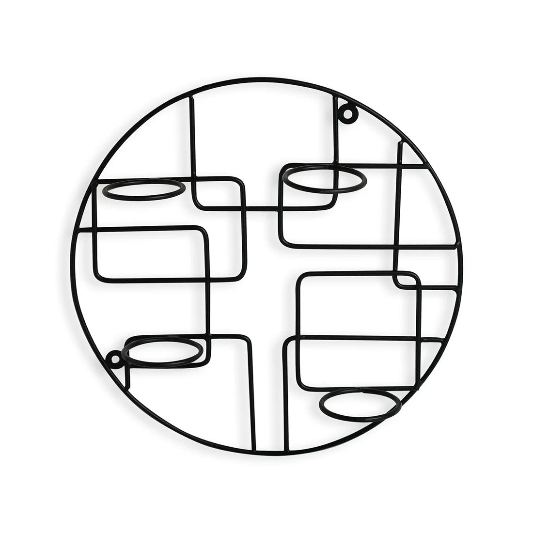 ‘Bauhaus Glass’ is a tribute to the architectural and artistic legacy of the Bauhaus movement. This wall-mounted tea light holder is a geometric masterpiece, symbolizing the power of clean lines and modern elegance. With 4 floating votive holders delicately arranged within a round iron frame, it’s designed to create an impression wherever placed. Add it to your space to bring a touch of modern art and glowing warmth.