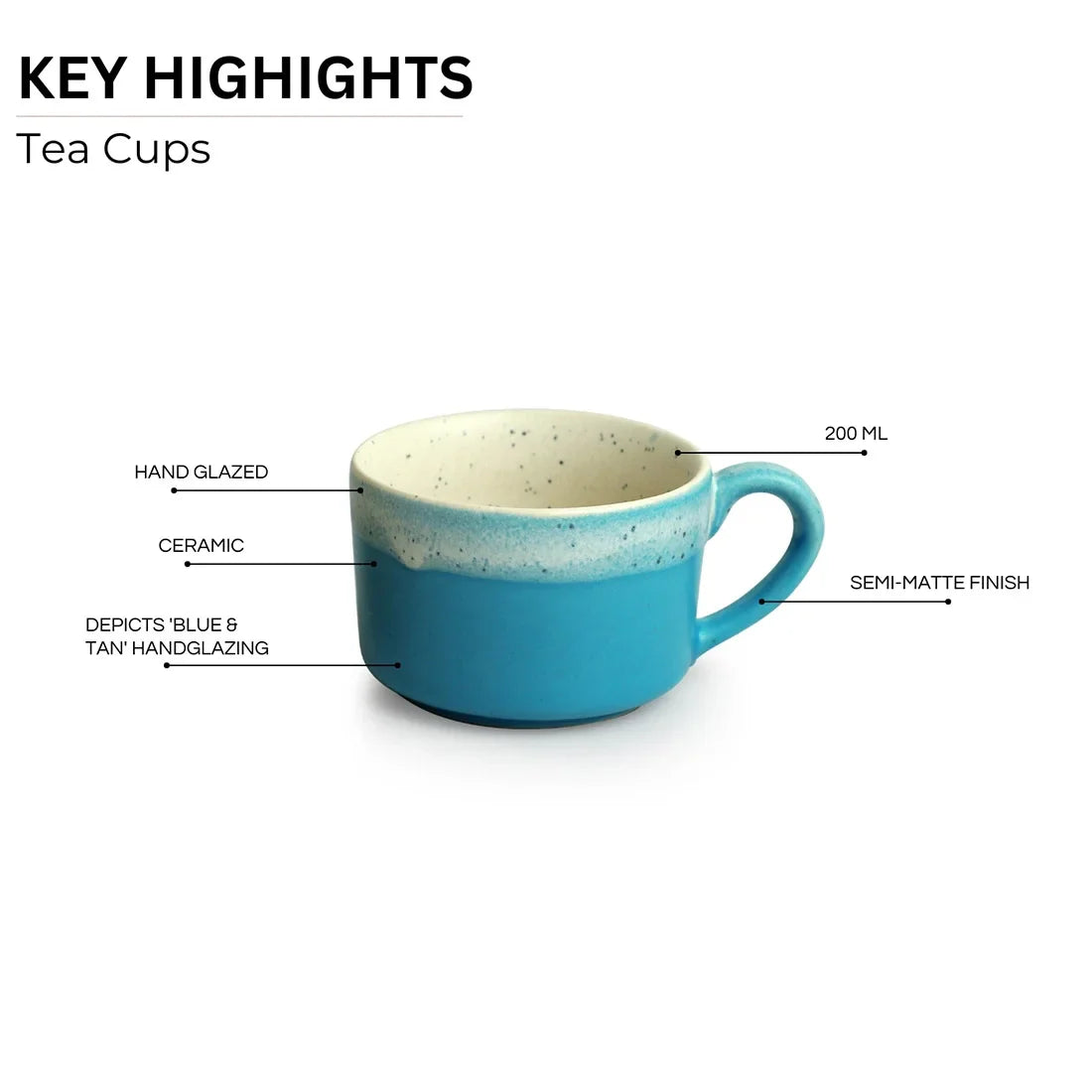- Depicts beautiful handglazing done on round tea cup.