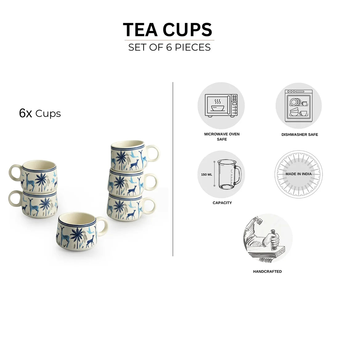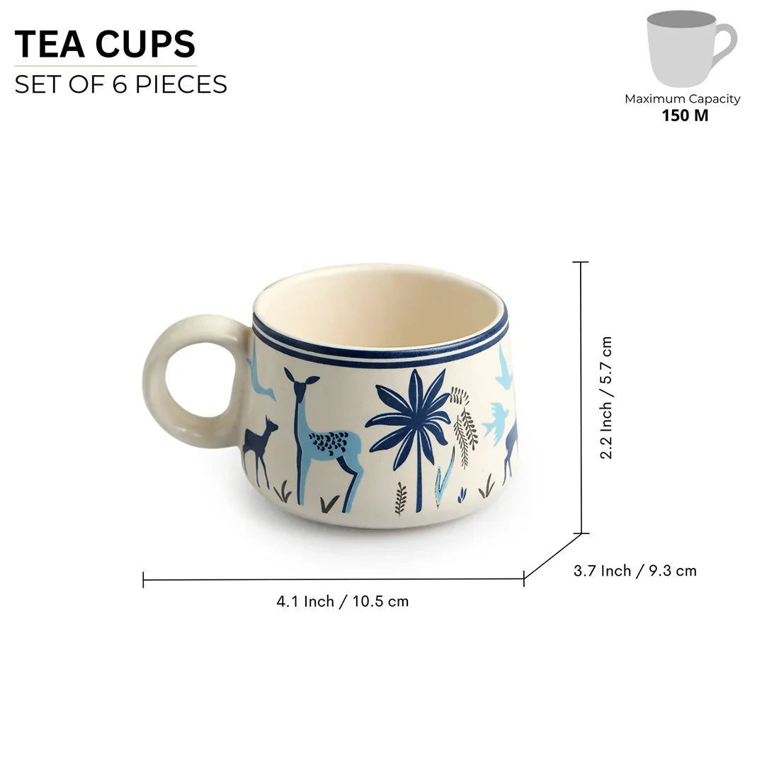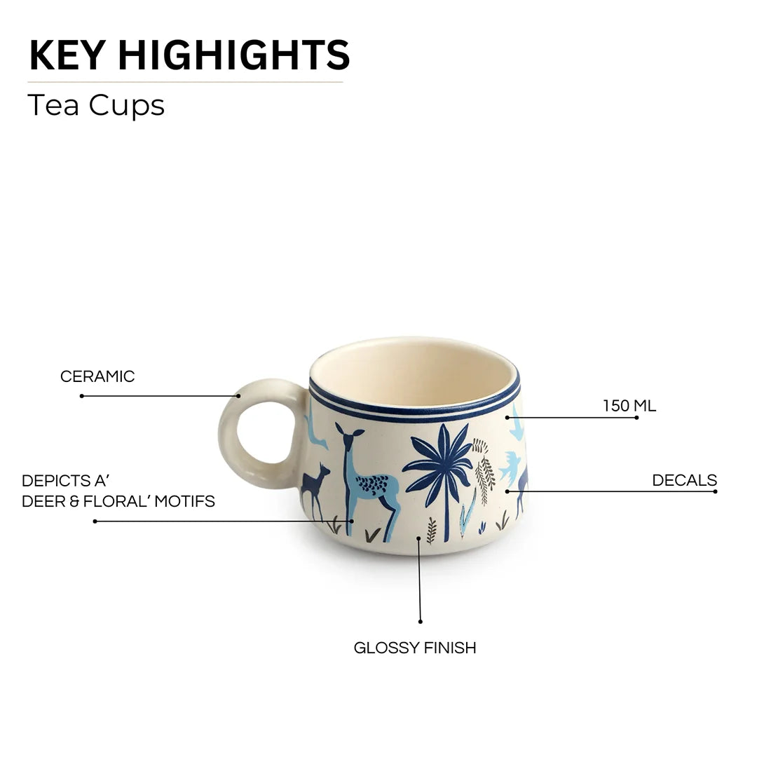 The ‘Deer & Floral’ is a set of 6 tea cups with 150 ML each that have been masterfully handcrafted in ceramic by skilled Indian artisans. The tea cups features a curved handle that makes it user friendly & ergonomically designed. These cups are perfect for sharing tea or coffee with your loved ones. These are also an ideal gift for housewarmings and the festive season. The tea cups are microwave and dishwasher safe.