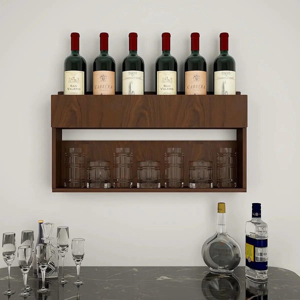 Designer Modish Look Backlit MDF Mini Bar Shelf in Walnut Finish
