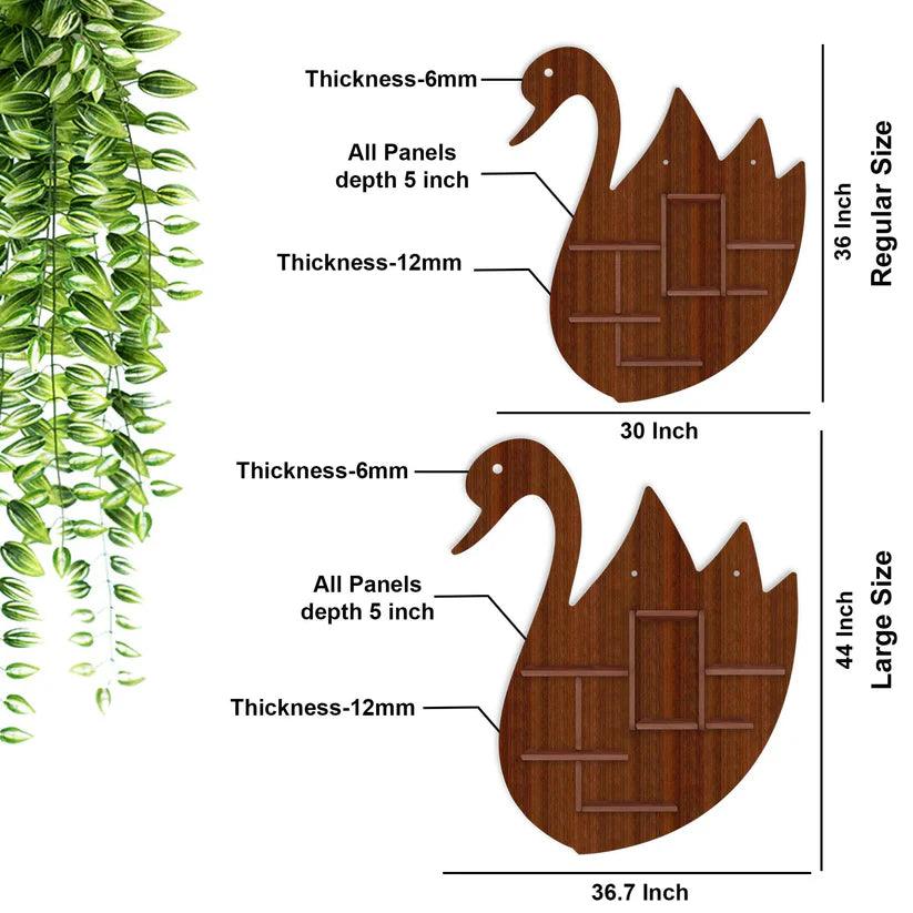 Designer Swan Shape Backlit Wooden LED Light Wall Shelf with Walnut Finish