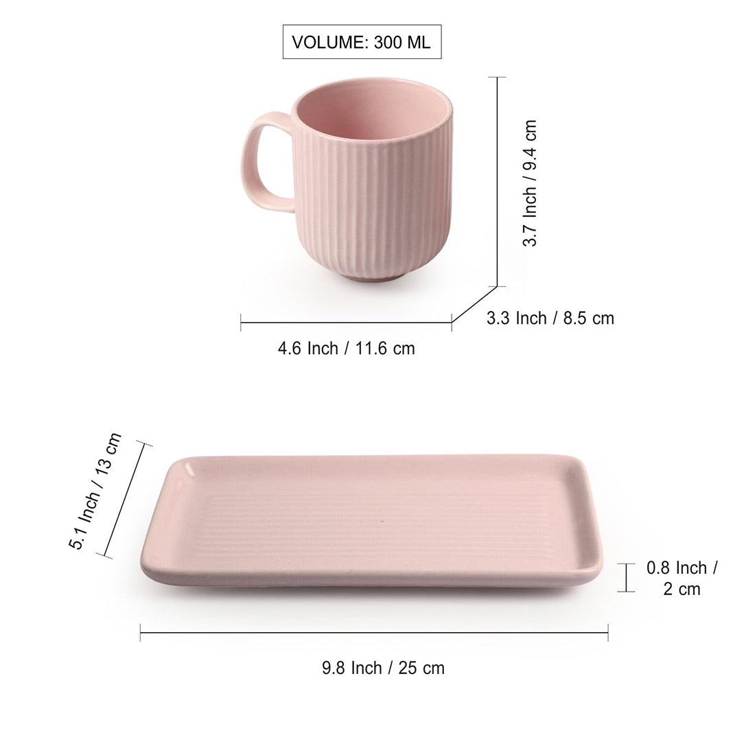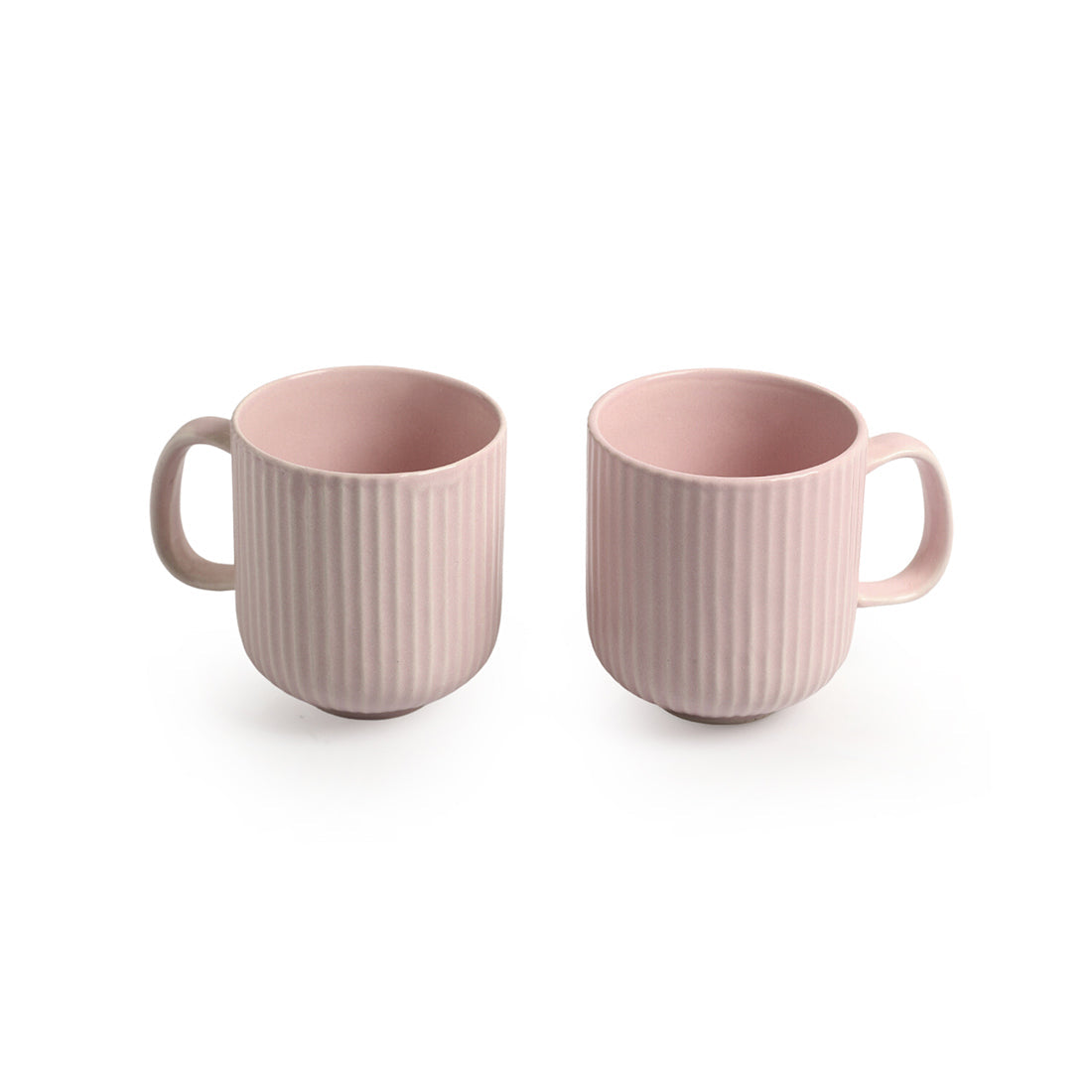 'Coral Reef’ is a collection inspired by vibrant marine ecosystem that harbours underneath the azure ocean.Underneath the azure ocean, a vibrant colony of an eco system harbours itself. The raw organic forms and vast realm of colors becomes its beauty. Every little plant contributes in the vibrant coral reef. Handglazed and crafted by the artisans, this collection is inspired by the colors and organism exisiting underneath the sea. Subtle ribbed textures, frosted finish and crystaline formation of colors are some of the elements worked upon by the artisans to create this beauty of coral reef on your dinner table. Beautifully handmade and delicately glazed, ‘Coral Reef’ is a set of two beautiful ceramic studio pottery mugs. Out of the ordinary, this set of mugs is endowed with simple curved handles, broad stout bodies and easy to grip forms with striped textures making them effortlessly elegant tableware. 'Coral Reef' brings home the simple, easy joys during your tea/coffee times of solitude and togetherness as one of a kind handmade tokens of love; making for a lovely gift idea at the same time.