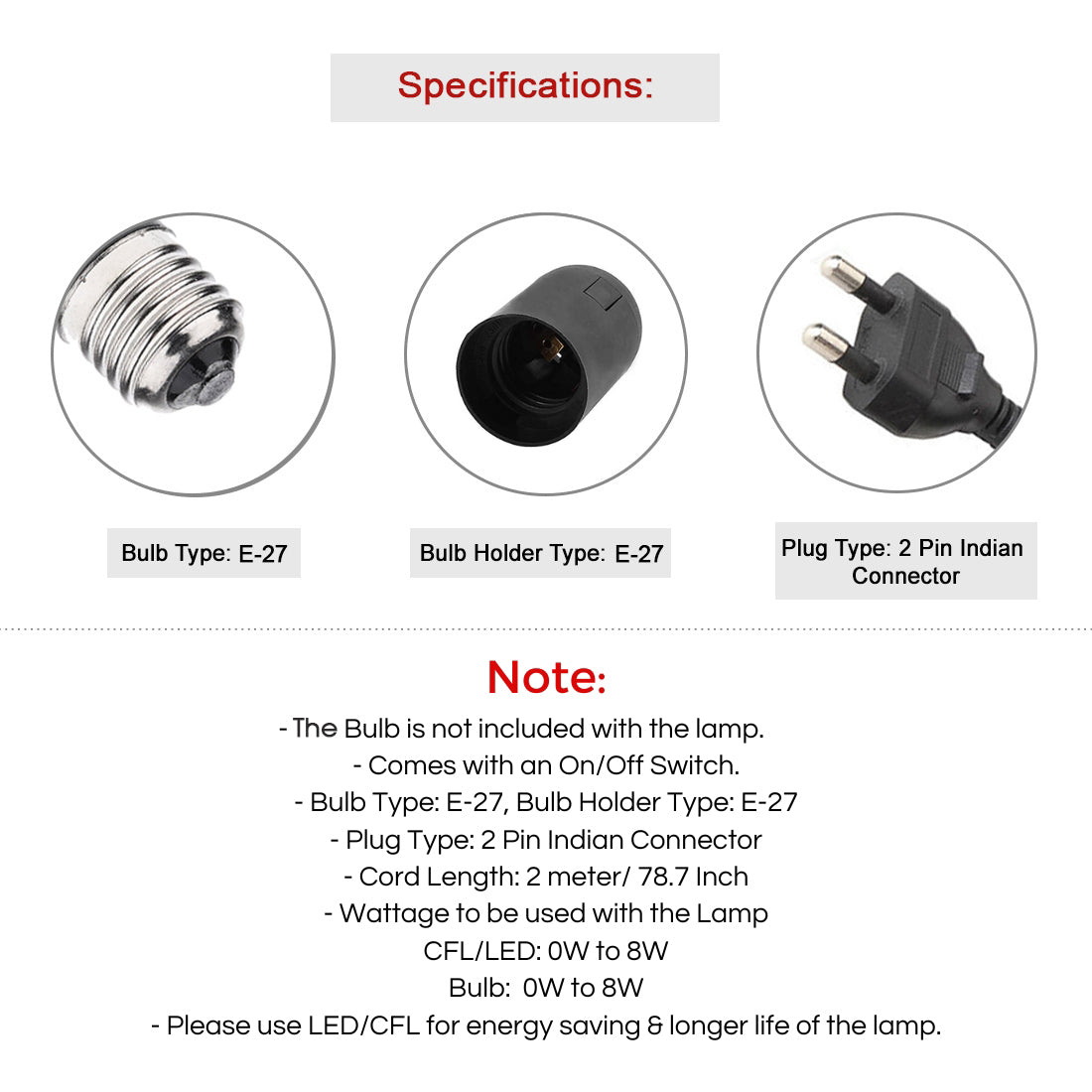 - Bulb & Holder Type: E-27 (Half Thread)