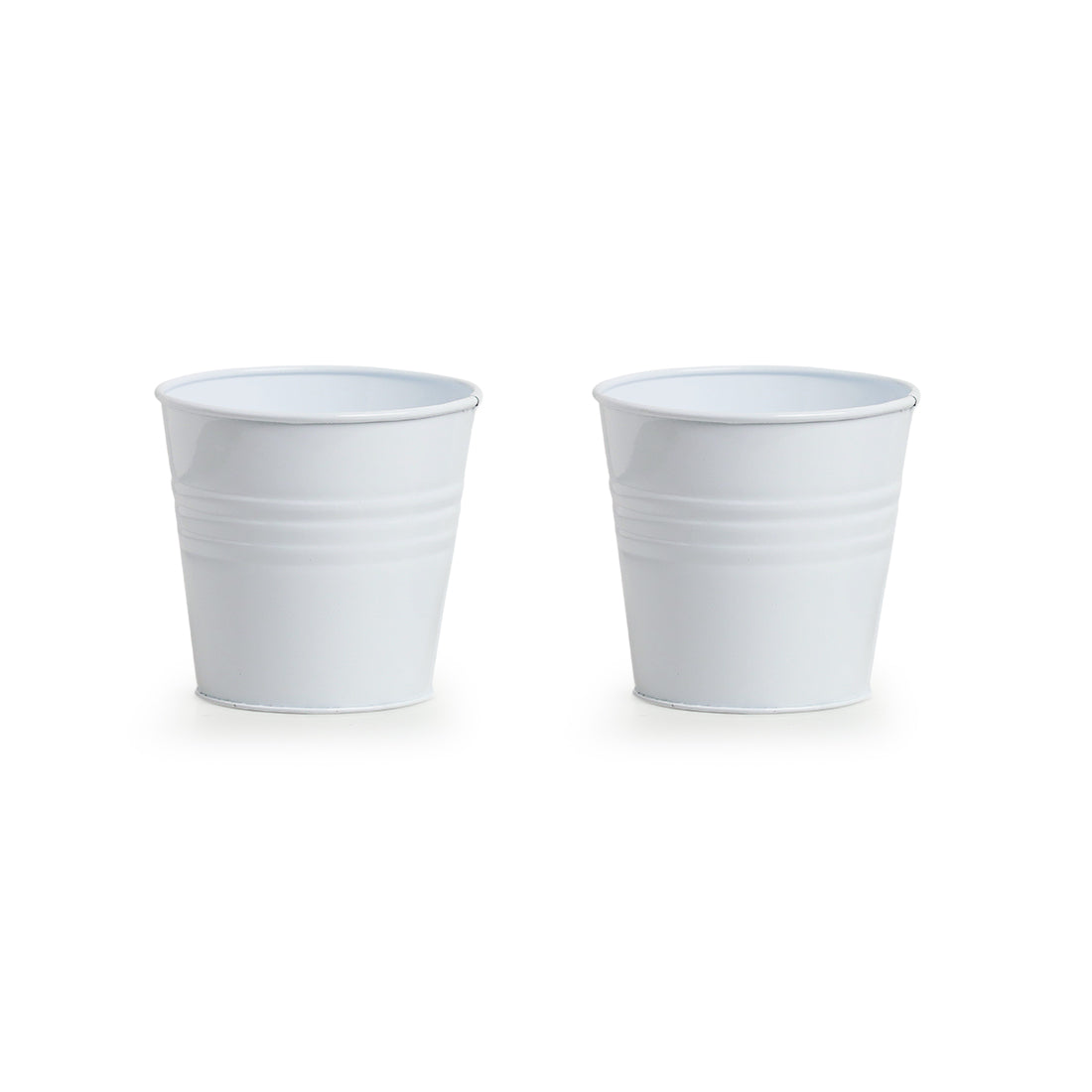 - Handcrafted In Bucket Shape With Powder Coating To Give Glossy White Finish Whereas The Holder Is Handcrafted In the shape of Leaves.