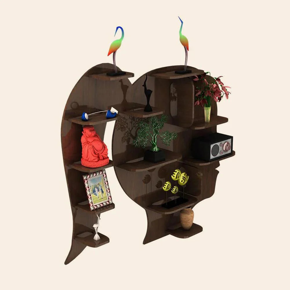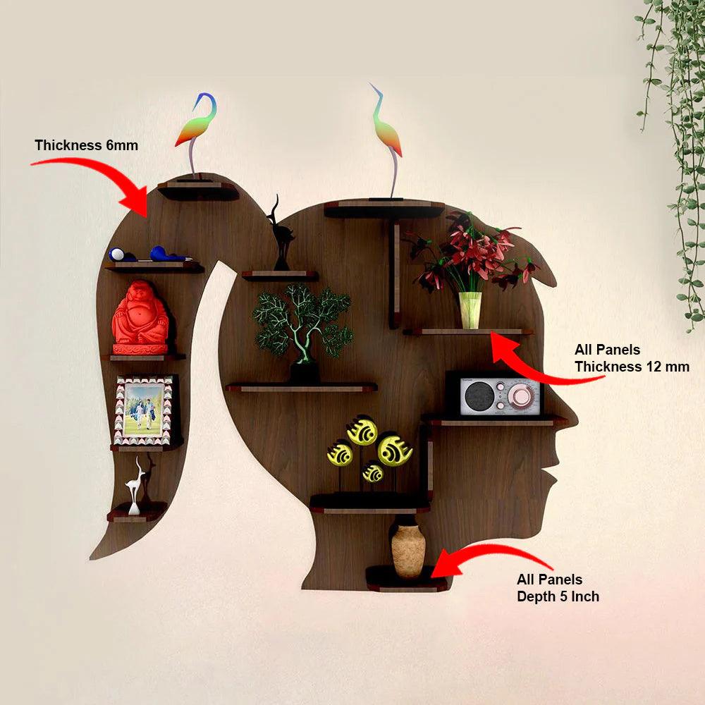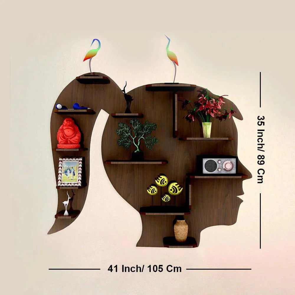 Girl Backlit Designer Wooden Wall Shelf / Book Shelf / Night Light, Walnut Finish