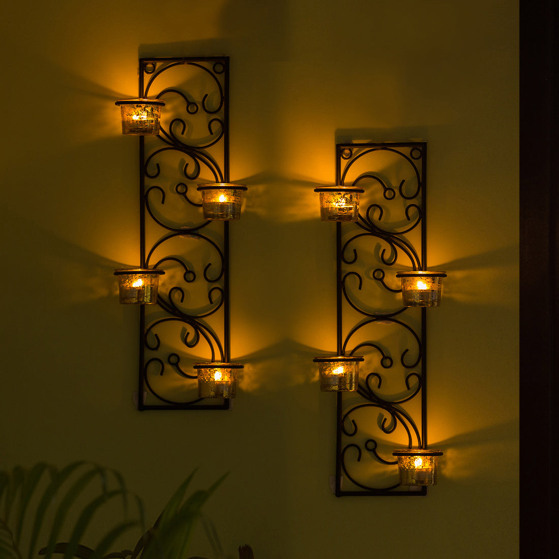 - Comes with 2 Wall Frames, 8 Glass Holders & 8 Tea-Light Candles.