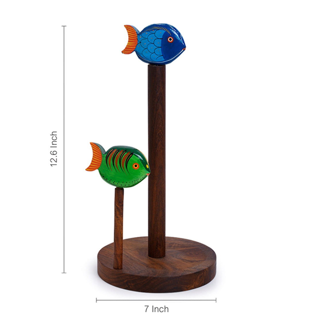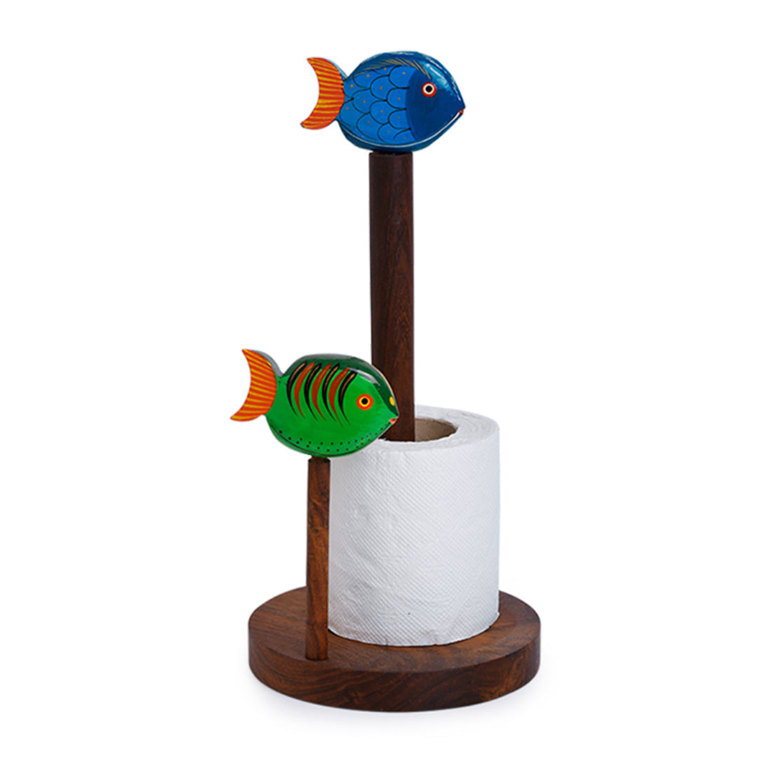 Hand carved, hand painted and wood-turned on the lathe machine, the artisans of Varanasi have beautifully fused in age-old wood techniques with utility features to perfectly brighten up your table tops. This paper roll holder is handcrafted to make usage simpler while adding a dash of colour, a little of tradition and a couple of beautiful fish motifs to your favourite spaces.