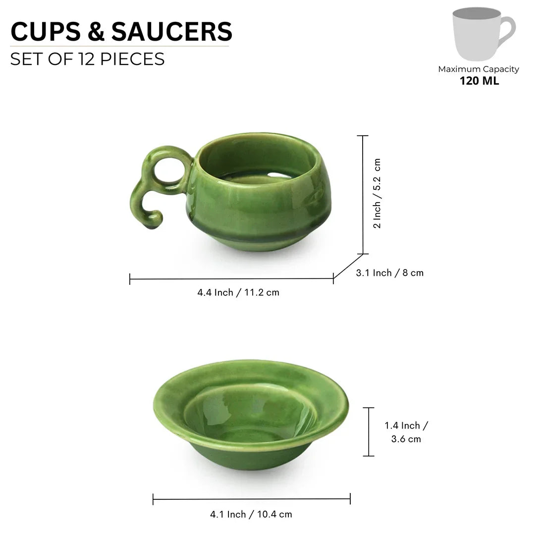 - Inspired by the tranquility of forest, our Ceramic Cups and Saucers in Jade Forest Green color bring a touch of outdoor charm to your tea moments.
