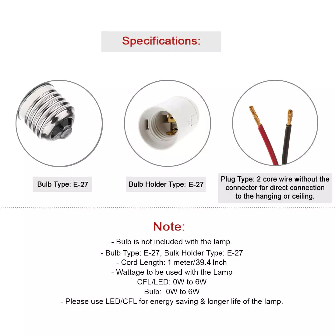 - Comes with a 1 meter long wire without a plug to make ceiling attachment simple.