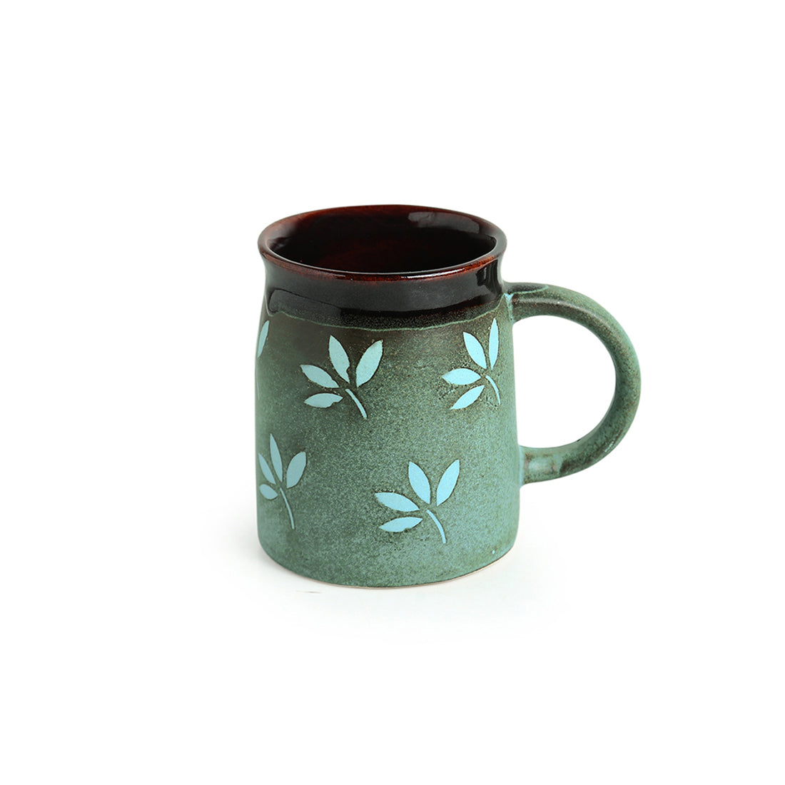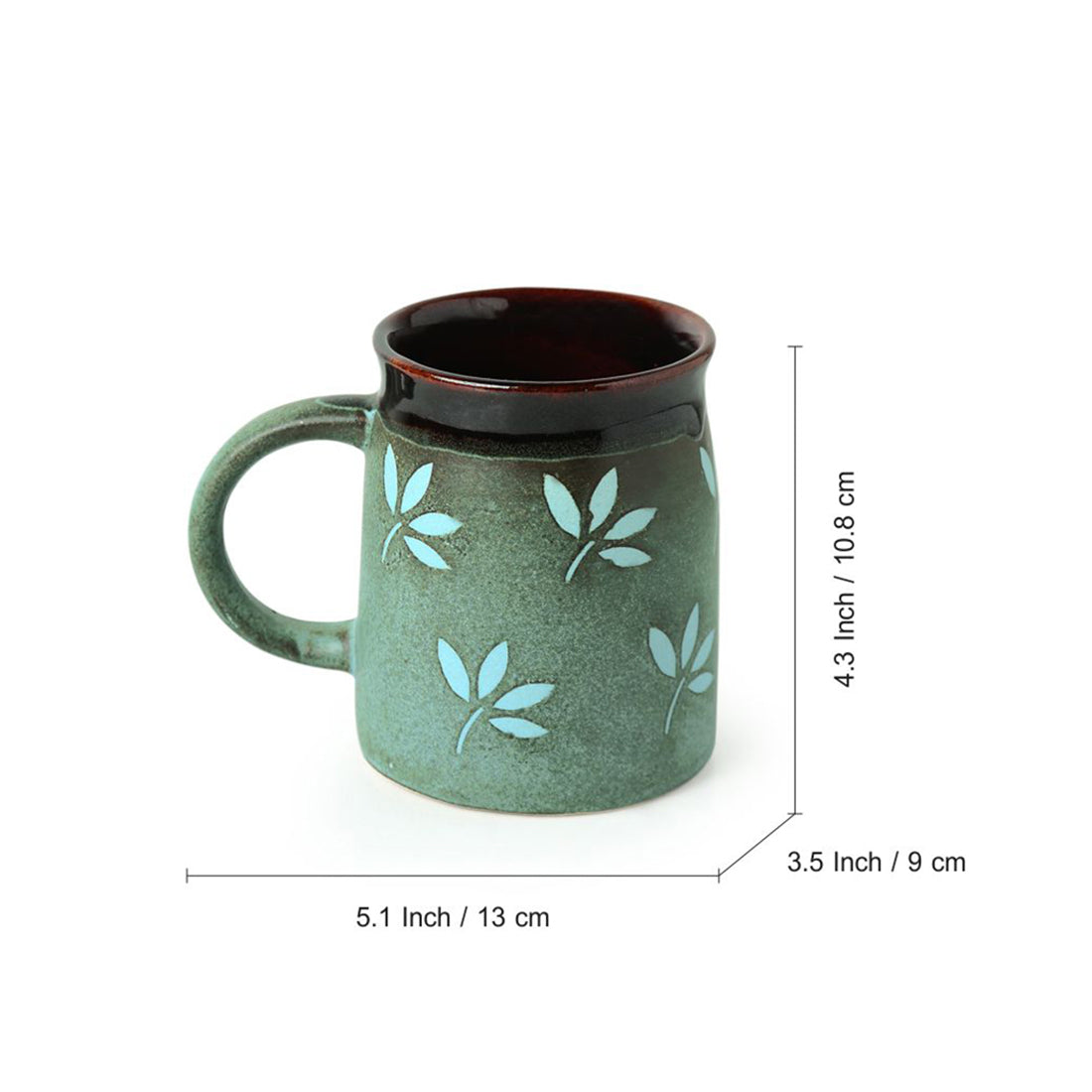 The 'Leaf Sips' is a set of 2 mugs made in ceramic with a volume of 400 ML each. Handmade in dual hand-glazed studio pottery with so much of love by our artisans, these come with matte finish on the outside along with beautiful hand-painted patterns of leaves and glazed finish on the inside and edges. Available in Sage-Green and Cocoa-Brown colour, the ' Leaf Sips ' is an ideal set of home product for having tea and coffee with your loved ones which can also be used as milk mugs and can help in enhancing the vibes of your abode by introducing rich feels of traditional beauty and flavour.