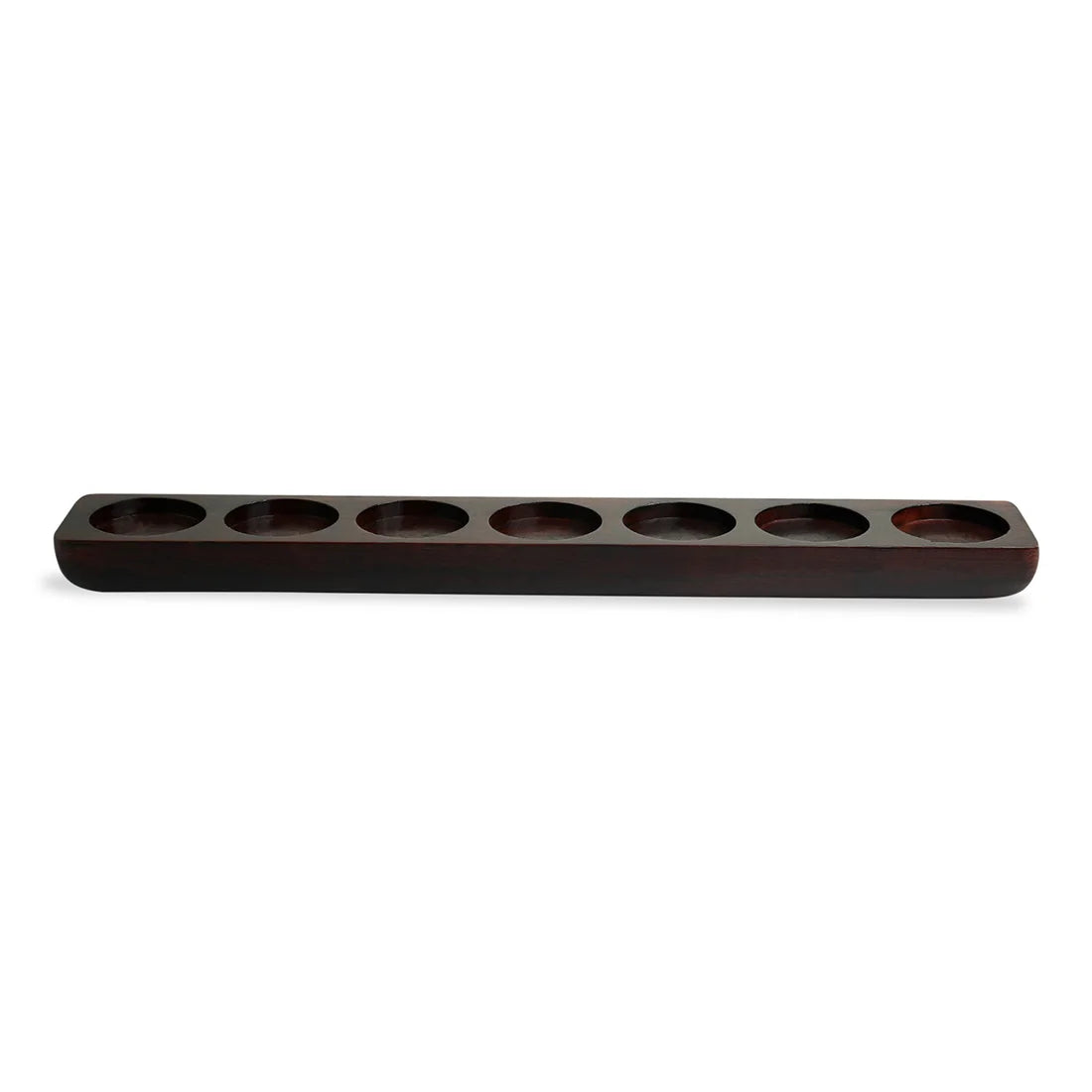 Introduce warmth and charm into your home with the ‘Linear Flame’ table tea light holder — a beautifully handcrafted and hand-painted centerpiece made from premium mango wood and glass. Designed with a long, elegant rectangular frame, this linear holder accommodates 7 glass votive holders that rest gracefully in carved grooves.