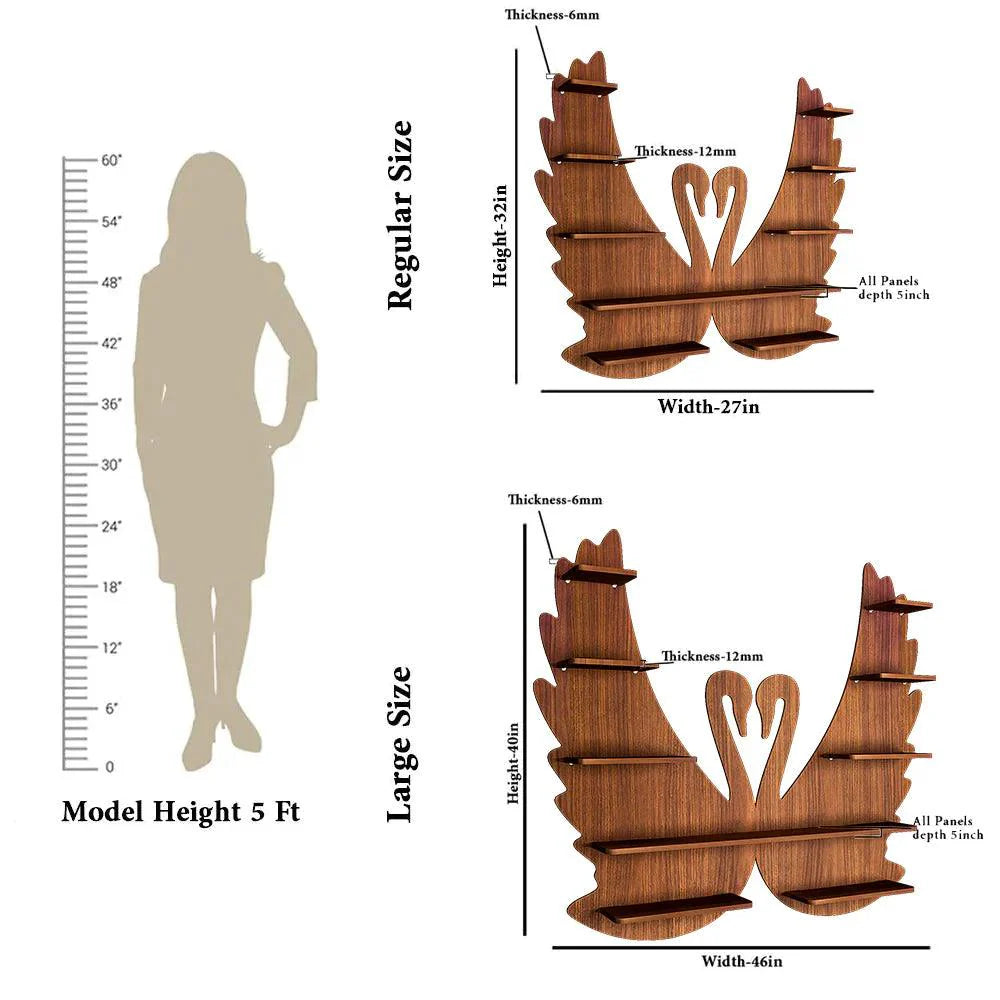 Loving Swan Backlit Designer Wooden Wall Shelf / Book Shelf / Night Light, Walnut Finish