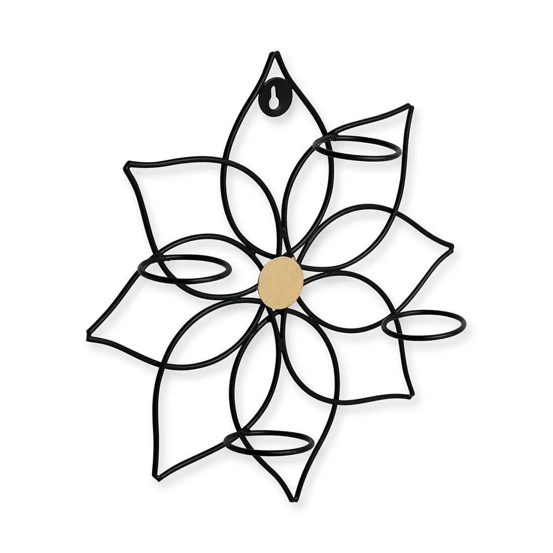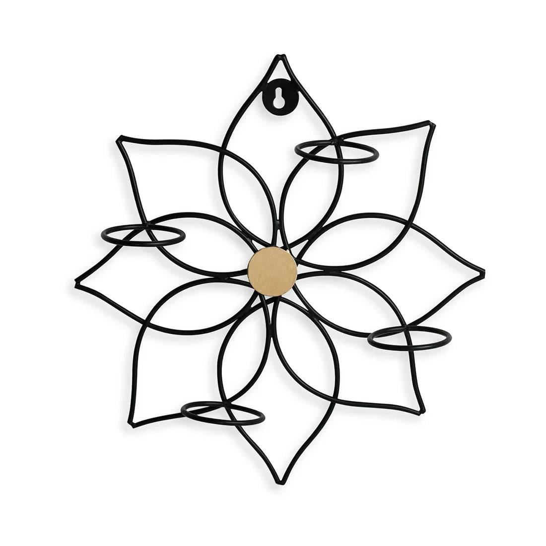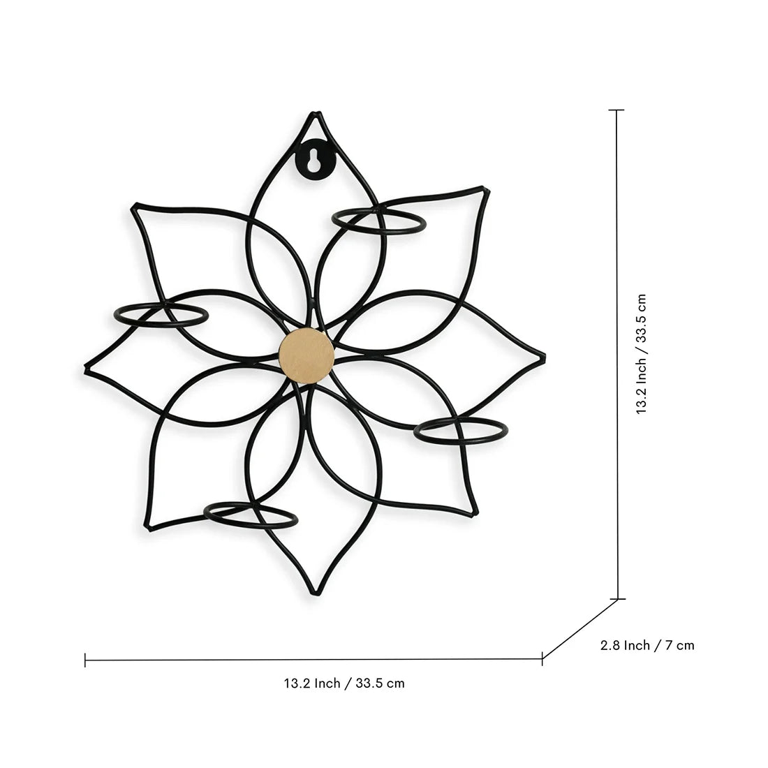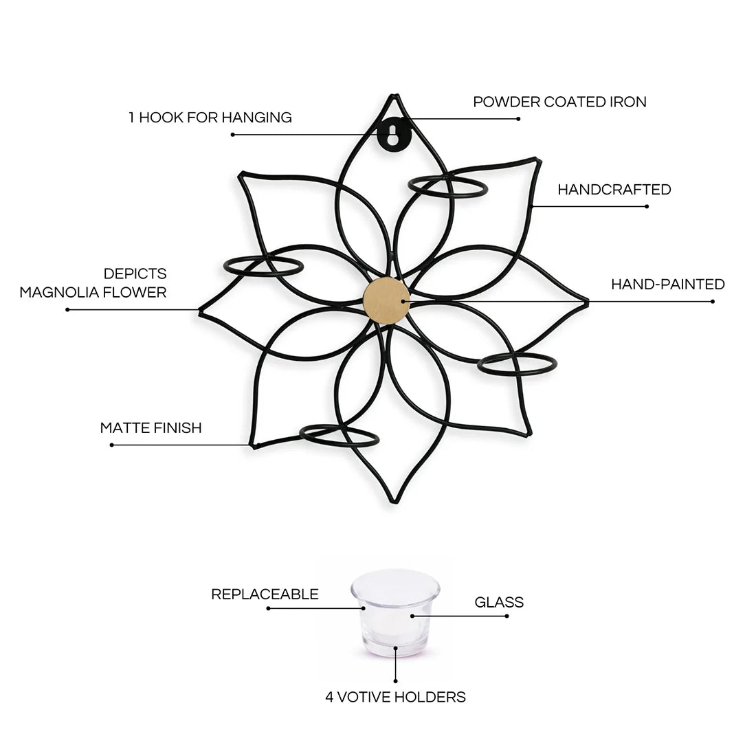 Bring the essence of blooming flowers into your home with the 'Magnolia' wall tea light holder. Handcrafted and hand-painted by skilled Indian artisans, this elegant decor piece features a floral motif inspired by the Magnolia flower. The beautiful iron frame in matte black is delicately accented with golden hand-painted details, offering a perfect blend of nature and sophistication.