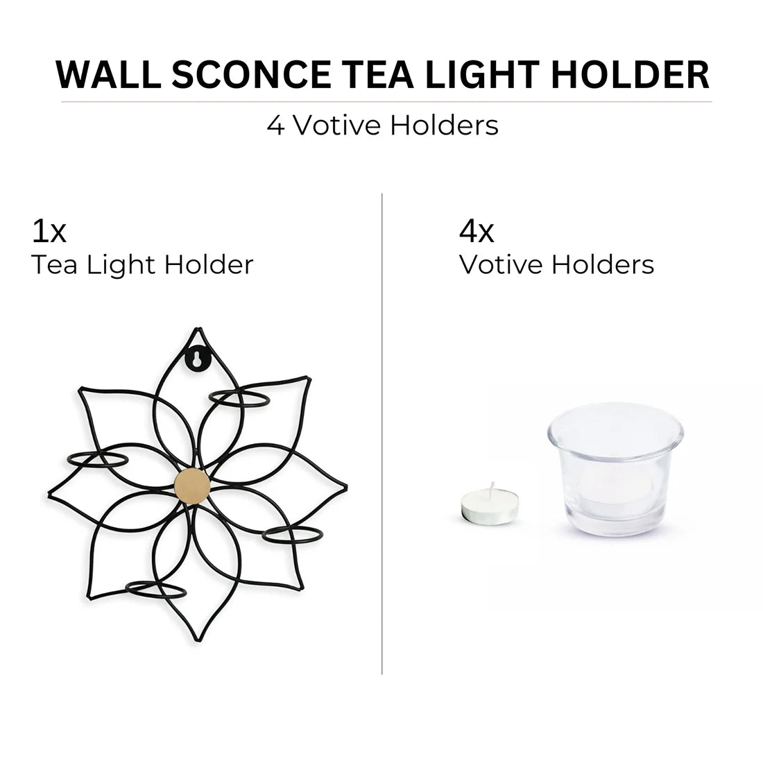 This wall-mounted holder includes 4 replaceable votive holders and 4 tea-light candles, creating a magical glow that transforms your space into a cozy retreat. Ideal for bedrooms, living rooms, entryways, or festive occasions, this is a must-have for anyone who loves floral decor and ambient lighting.