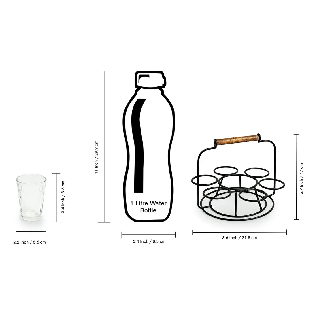 TEA GLASSES: Glass,HOLDER: Iron & Mango Wood