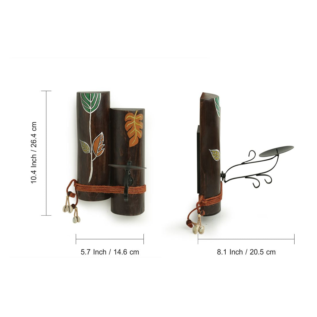 Inspired by the ‘Shades of a Leaf’ during the autumn season in the valleys of Kashmir, this Wall Candle Holder is made of Teak wood. The hand-painted leaf pattern derives its influence from the deep forest areas of Kashmir. The golden-brown color represents the blanket created by the fallen leaves during the autumn season. This Wall Candle Holder is a marvelous combination of sophistication and aesthetics, assuring to please the eye of the viewer. This is ideal for placing a tea light candle and illuminating your wall to brighten up the space.