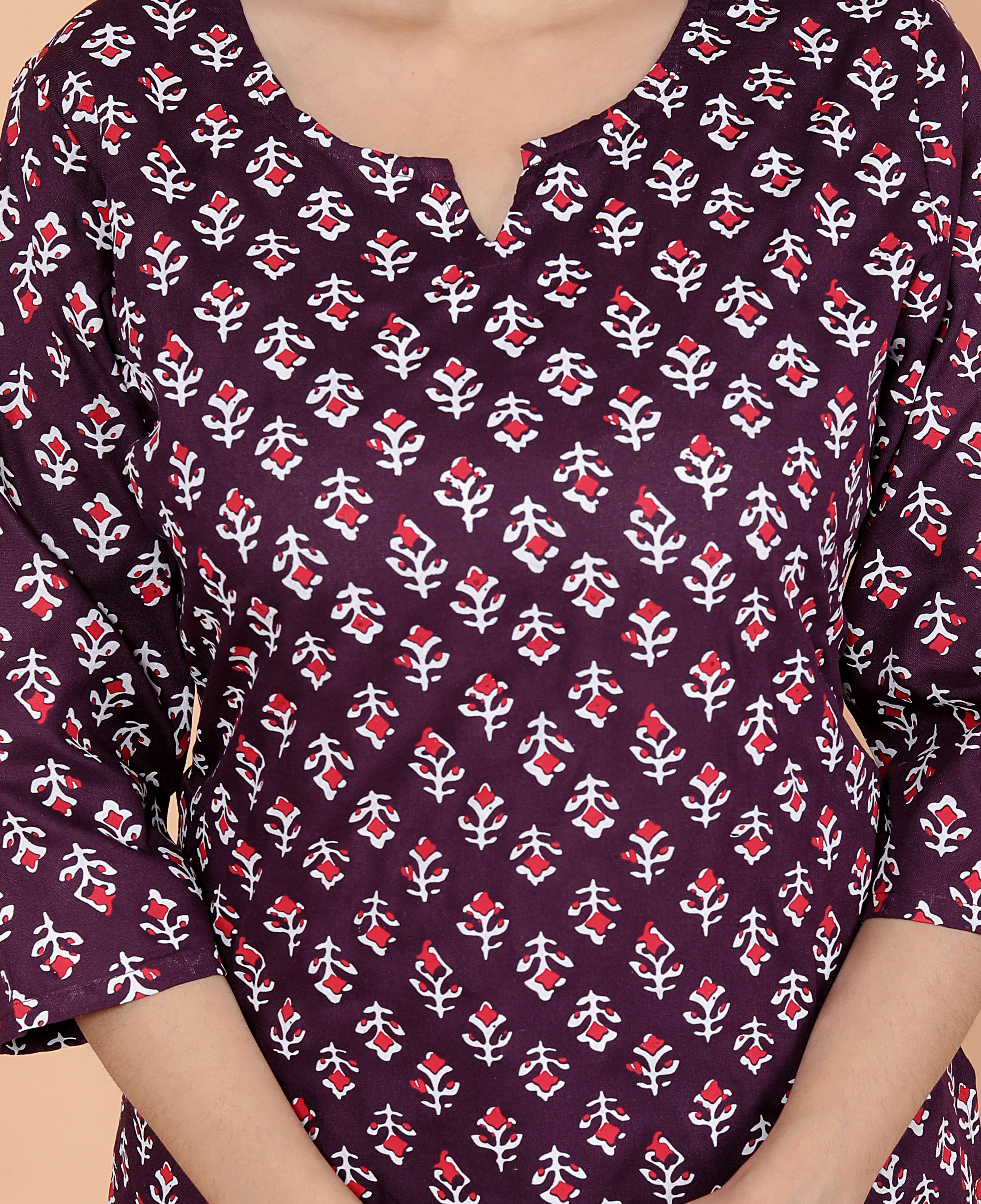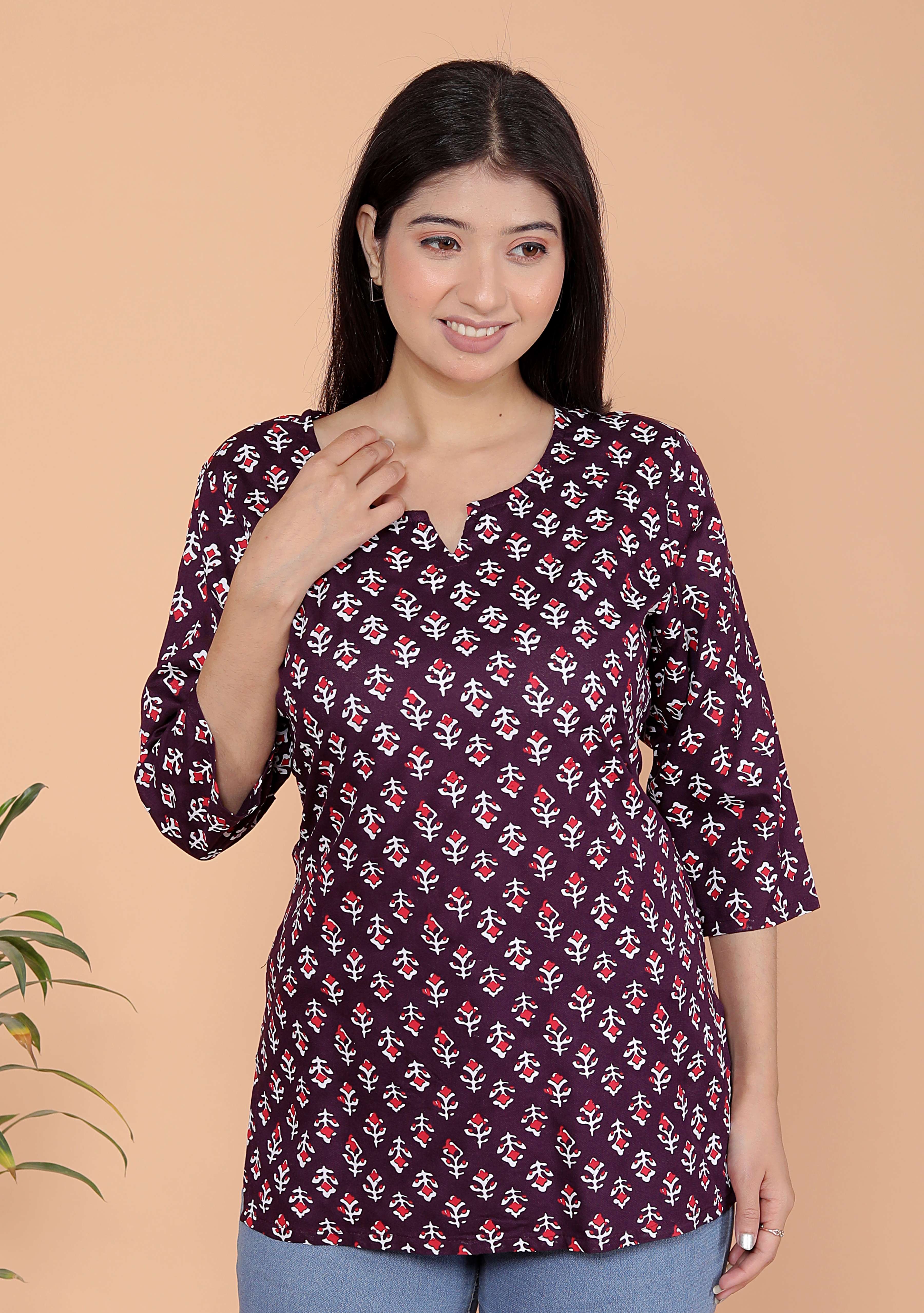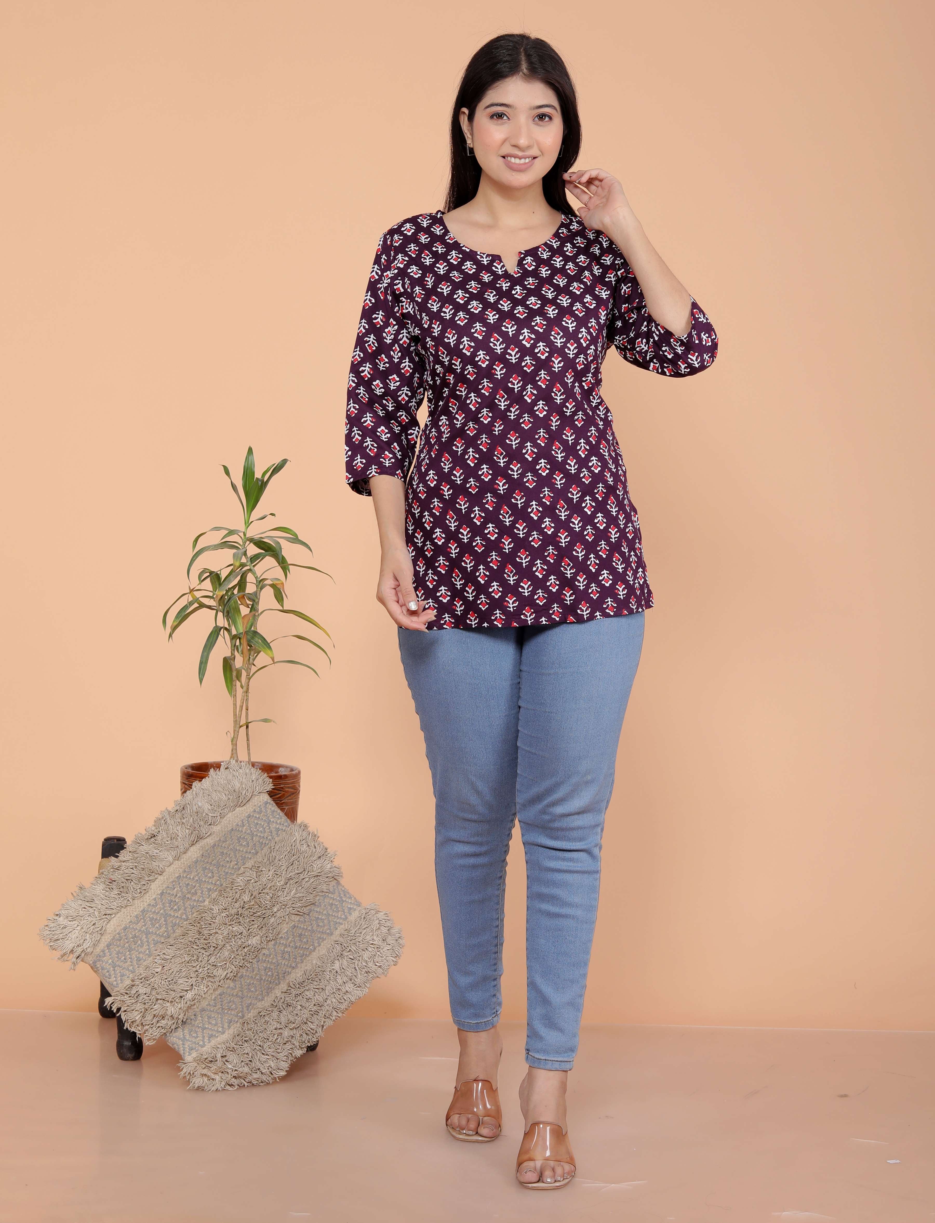 Upgrade your ethnic wardrobe with this stylish rayon short kurti for women, specially designed to pair perfectly with jeans, leggings, or trousers. Crafted from premium rayon fabric, this short kurta top offers a soft, breathable feel that keeps you comfortable all day long. Whether you're heading to college, the office, or a casual outing, this fashionable kurti for girls adds a touch of elegance and charm to your everyday look. This designer short kurti features a flattering fit, trendy patterns, and vibrant colors to suit every personality. Easy to wear and style, it's a must-have addition to your ethnic and casual wear collection.