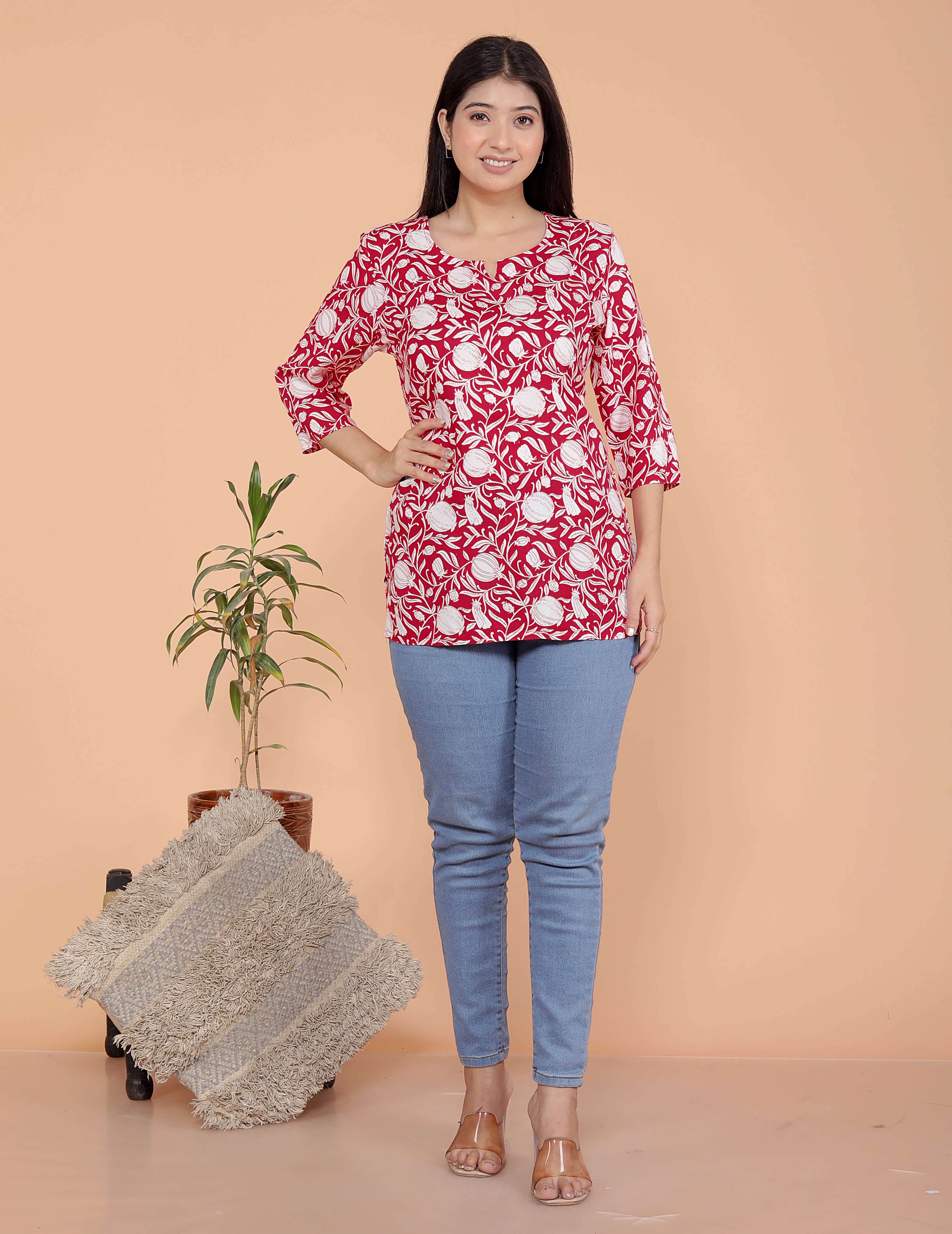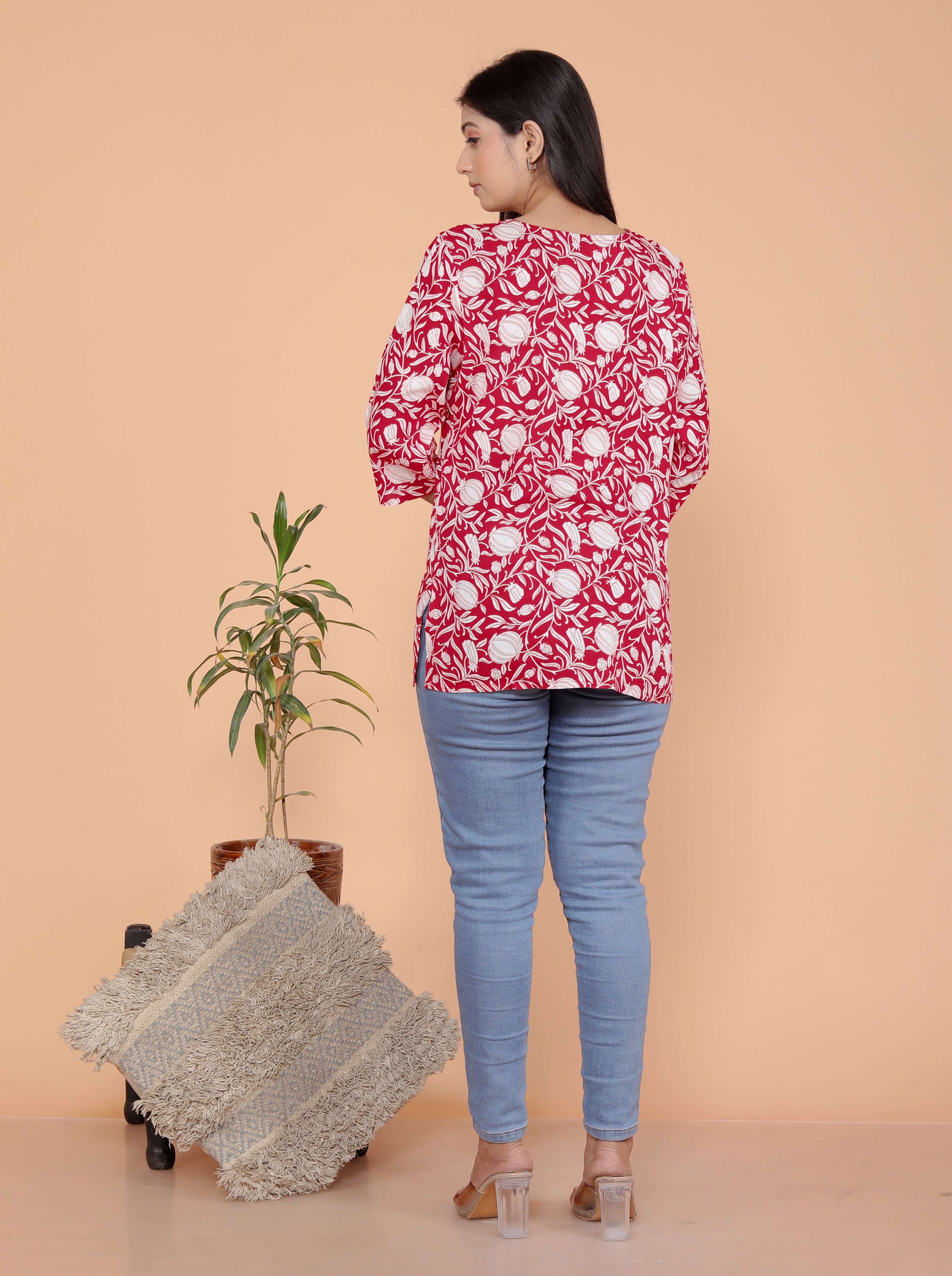 Upgrade your ethnic wardrobe with this stylish rayon short kurti for women, specially designed to pair perfectly with jeans, leggings, or trousers. Crafted from premium rayon fabric, this short kurta top offers a soft, breathable feel that keeps you comfortable all day long. Whether you're heading to college, the office, or a casual outing, this fashionable kurti for girls adds a touch of elegance and charm to your everyday look. This designer short kurti features a flattering fit, trendy patterns, and vibrant colors to suit every personality. Easy to wear and style, it's a must-have addition to your ethnic and casual wear collection.