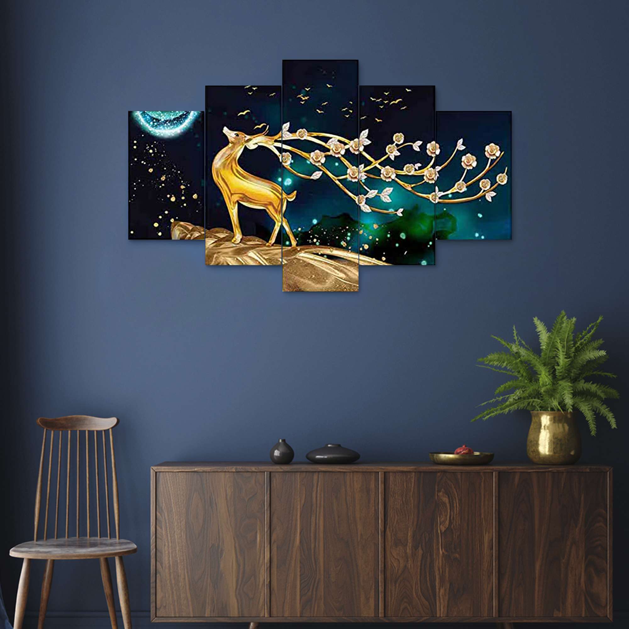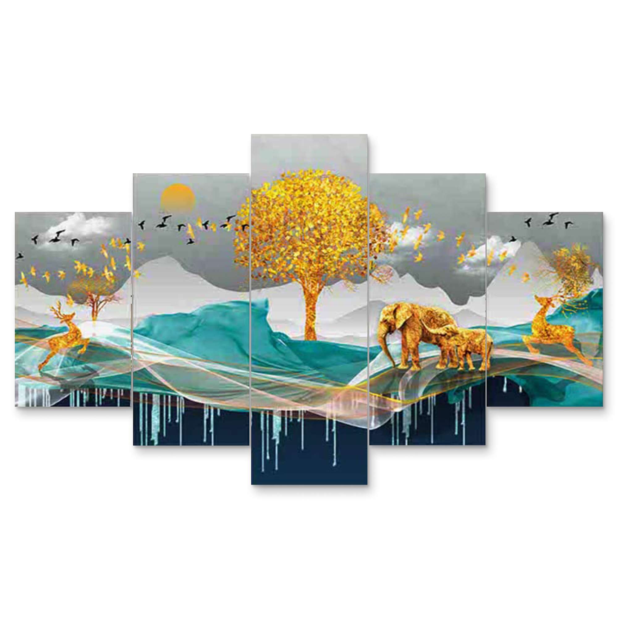 Elevate your home decor to new heights with the Shital Crafts Set of Five Framed Paintings ? a masterpiece collection designed for sophisticated wall decoration. Immerse your living spaces in artistic splendor with these captivating 3D paintings, carefully crafted to add a touch of brilliance to your surroundings. Measuring an impressive 75 x 43 cm, each painting is a statement piece, destined to become the focal point of your living room or bedroom. The intricate details and vibrant hues bring these artworks to life, making them the perfect choice for those seeking a harmonious blend of creativity and elegance.