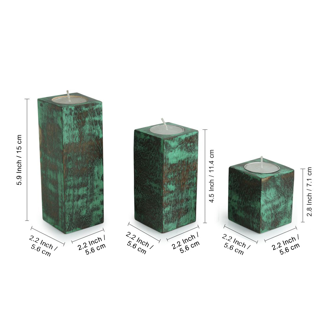 Delicately handcrafted in Mango Wood and skillfully hand-painted by craftspeople from the interiors of Rajasthan, €˜Teal Blocks€™ is a set of three complementing tea-light holders that also double up as table top accessories. The elegant contrast of rich teal blue and natural brown on these holders beautifully add to the raw aesthetics and look stunning when the tea light is lit, making delicate formations. The compact design, simple utility and the use of the beautiful teal blue on mango wood, carries with itself an aura of the vibrant colours of rural India and the warmth of the golden sunset on the rustic horizon to your favourite spaces, making them homely, cozy, radiating with rich Indian heritage. The tales of serenity handcrafted with love into this product set are perfect for your tranquil happy evenings, outdoors and indoors alike.