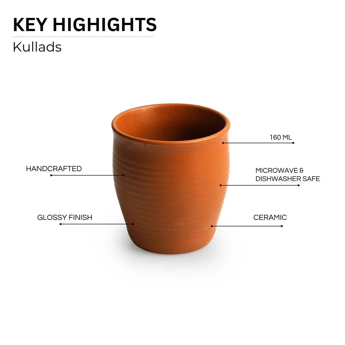 - Depicts hand-glazed ceramic kullads with a terracotta finish.
