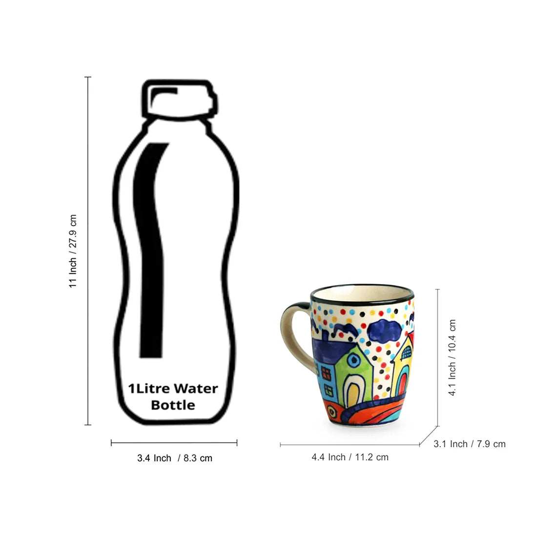 The Hut' is a set of 2 tea & coffee mugs, 1 nut bowl & 1 tray. The coffee mugs & nut bowl are handcrafted & hand-painted with hut motifs and have a volume of 270 ml & 80 ml respectively. The coffee mugs & nut bowl are made in ceramic and the tray is handcrafted in mango wood. The coffee mugs & nut bowl are microwave and dishwasher safe. Handcrafted with so much elegance by our artisans, this exclusive set of tableware can also be used as an ideal gifting option for house-warming parties and festive seasons.