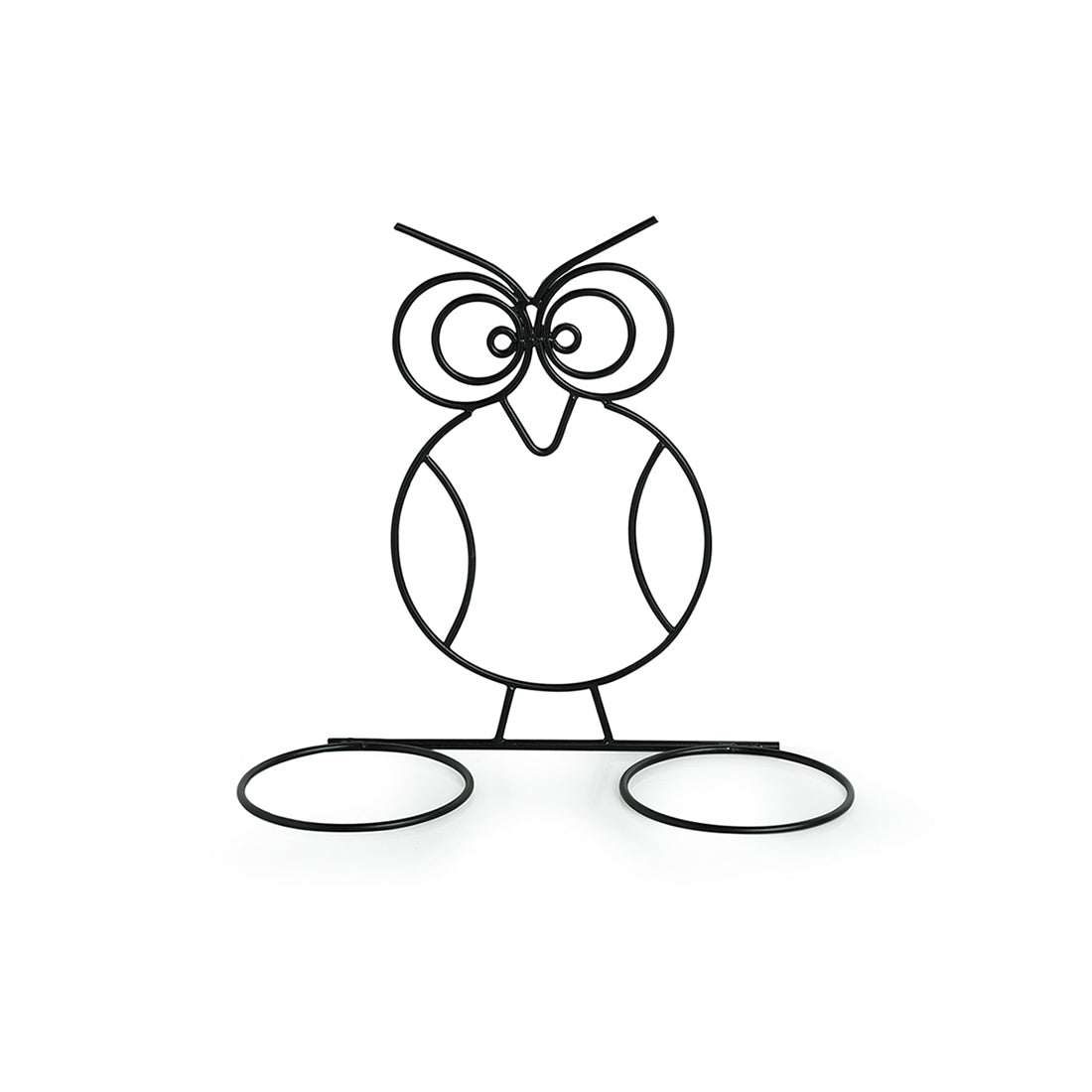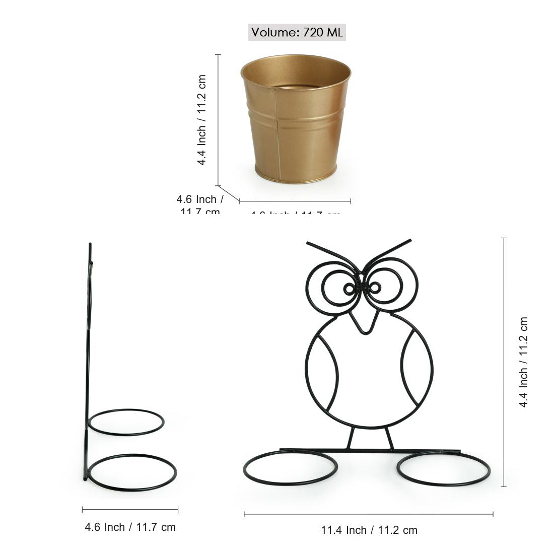 Handcrafted In Bucket Shape In Glossy Light Golden Finish With Owl Shaped Holder In Matte Black Finish