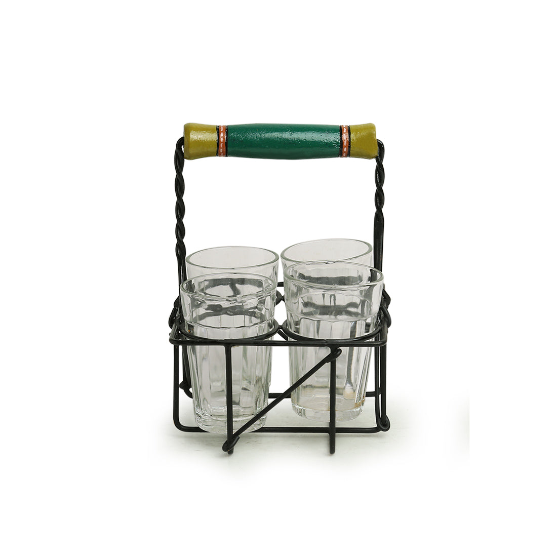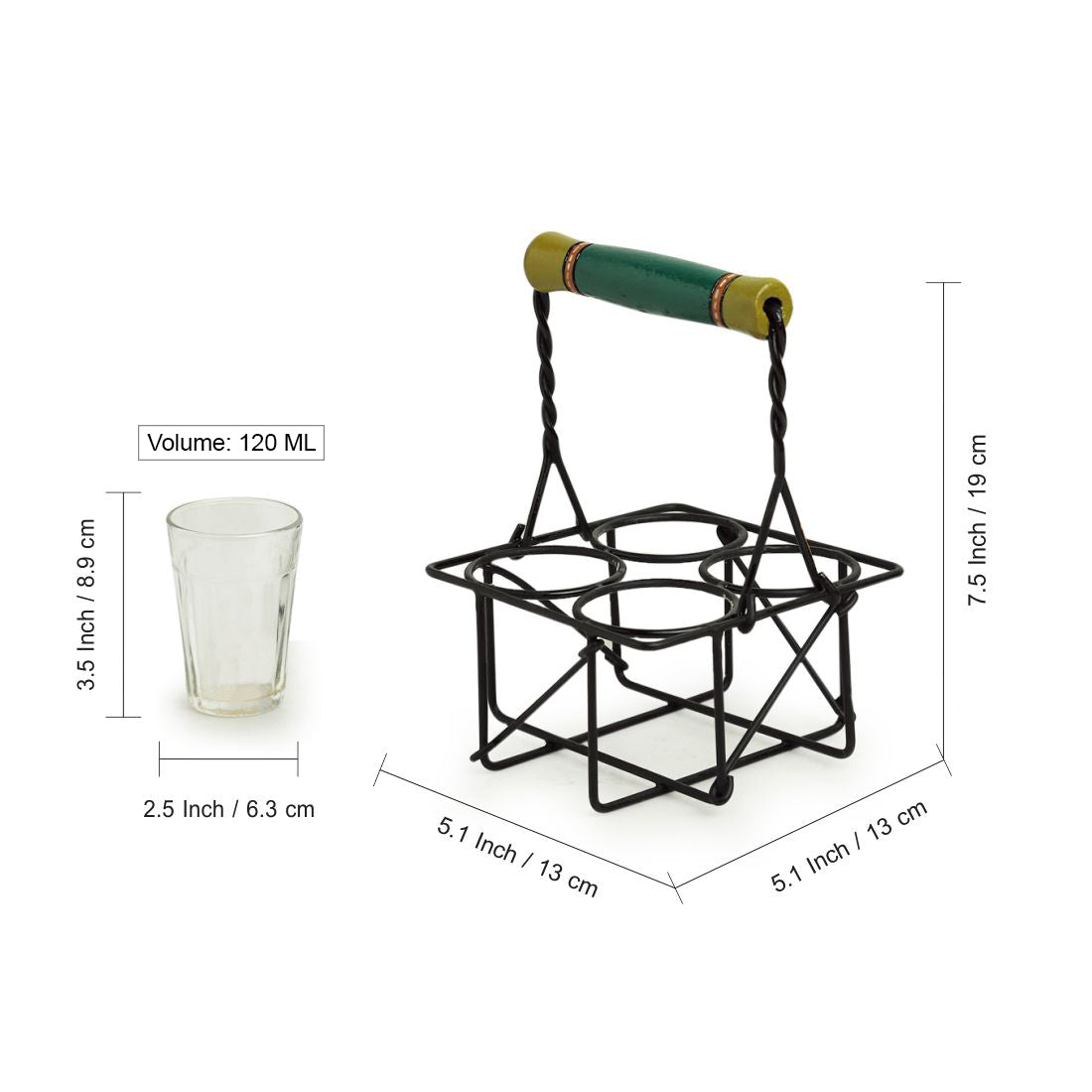 Inspired by the Chai Served at the Railway Station, this product jogs the memory of its users about their experiences in a train. Be it The Glass Cups in the Shape of Cutting Chai Cups served on the train or the Holder Shaped like the one carried by the tea vendors, this product ensures nostalgia. These are ideal for serving tea to your guests. Can also be used to serve beverages of your choice.
