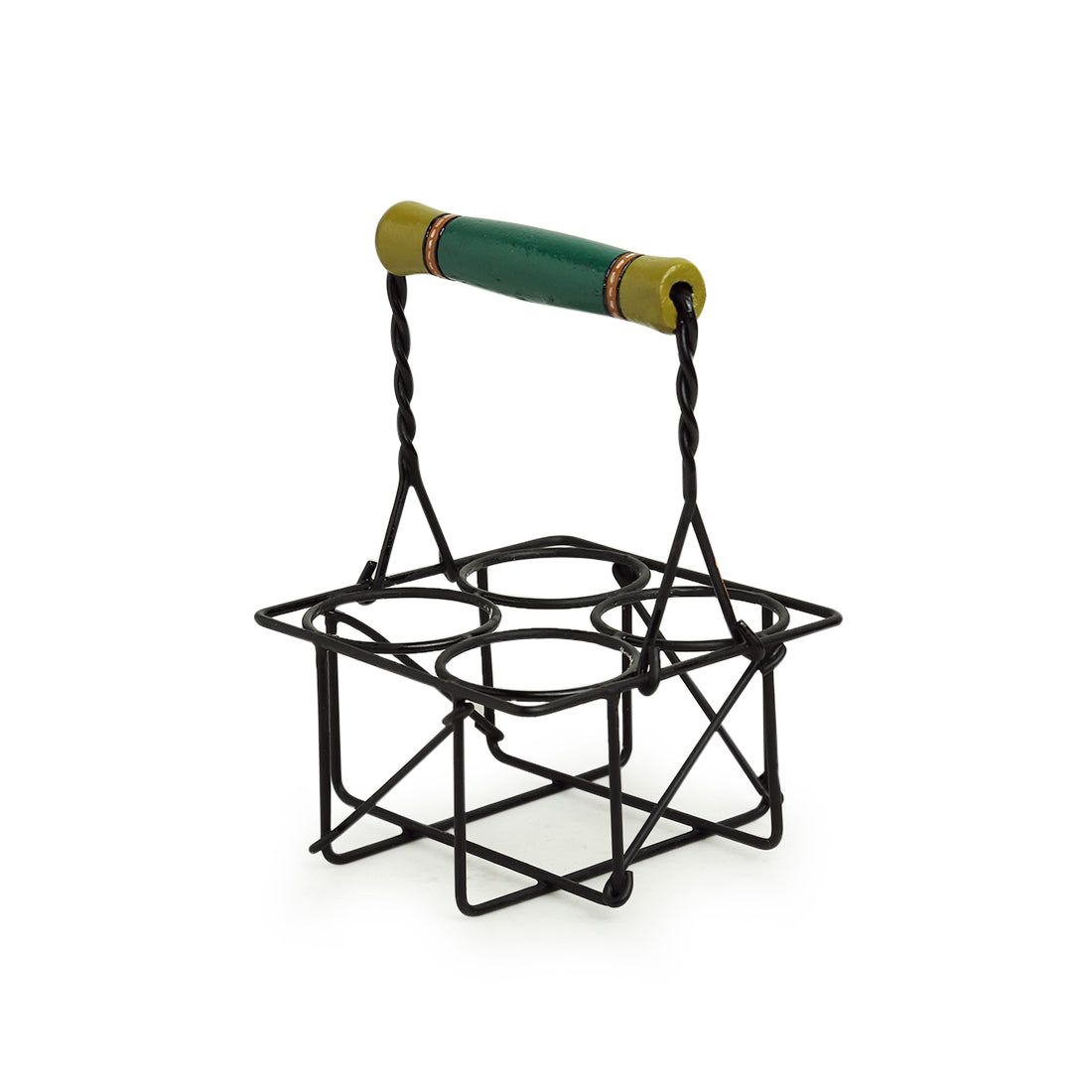 - The set is handcrafted in glass whereas the holder is handcrafted in iron.