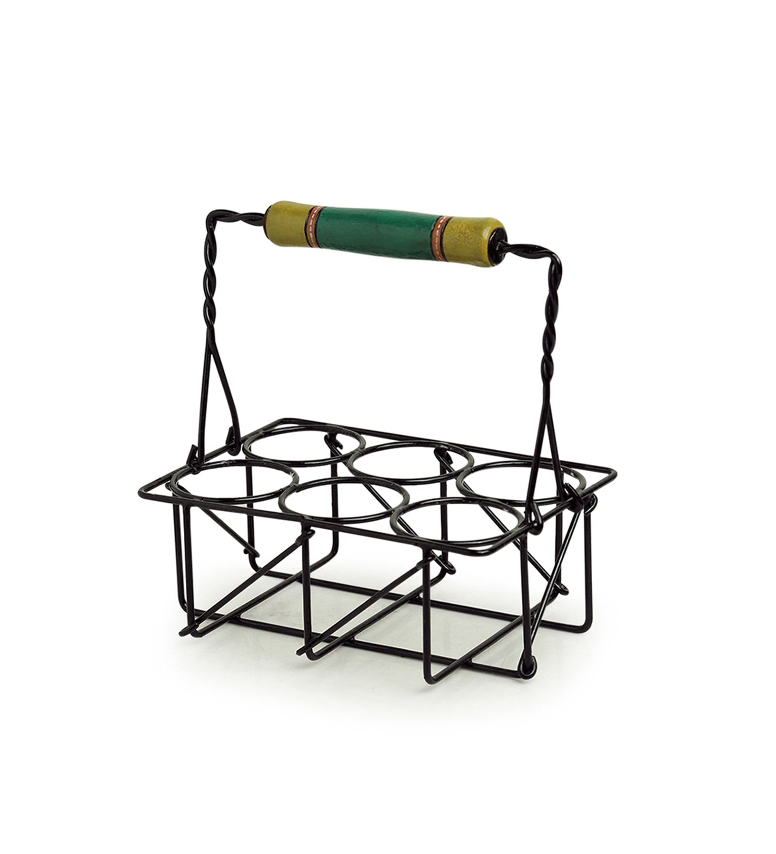 - The set is handcrafted in glass whereas the holder is handcrafted in iron.