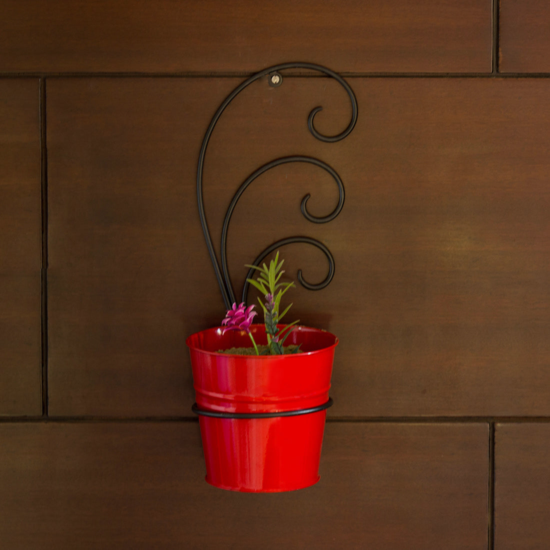 The Red Bucket' from the collection 'The Ferric Wonders' is a garden décor comprising of a Classic Bucket-shaped detachable planter pot with a unique curve-shaped holder both made in galvanized iron to avoid rusting. Handcrafted with so much love and elegance by our artisans, this set of Red coloured planter and Black coloured holder comes in glossy and matte finish respectively. 'The Red Bucket' is an ideal décorative planter pot for planting your favourite plants on the wall and also in the tables or floors after removing from the holder and for enriching the atmosphere of your dining room, balcony or office with vibrations of refreshment and serene experience as a wall décor.