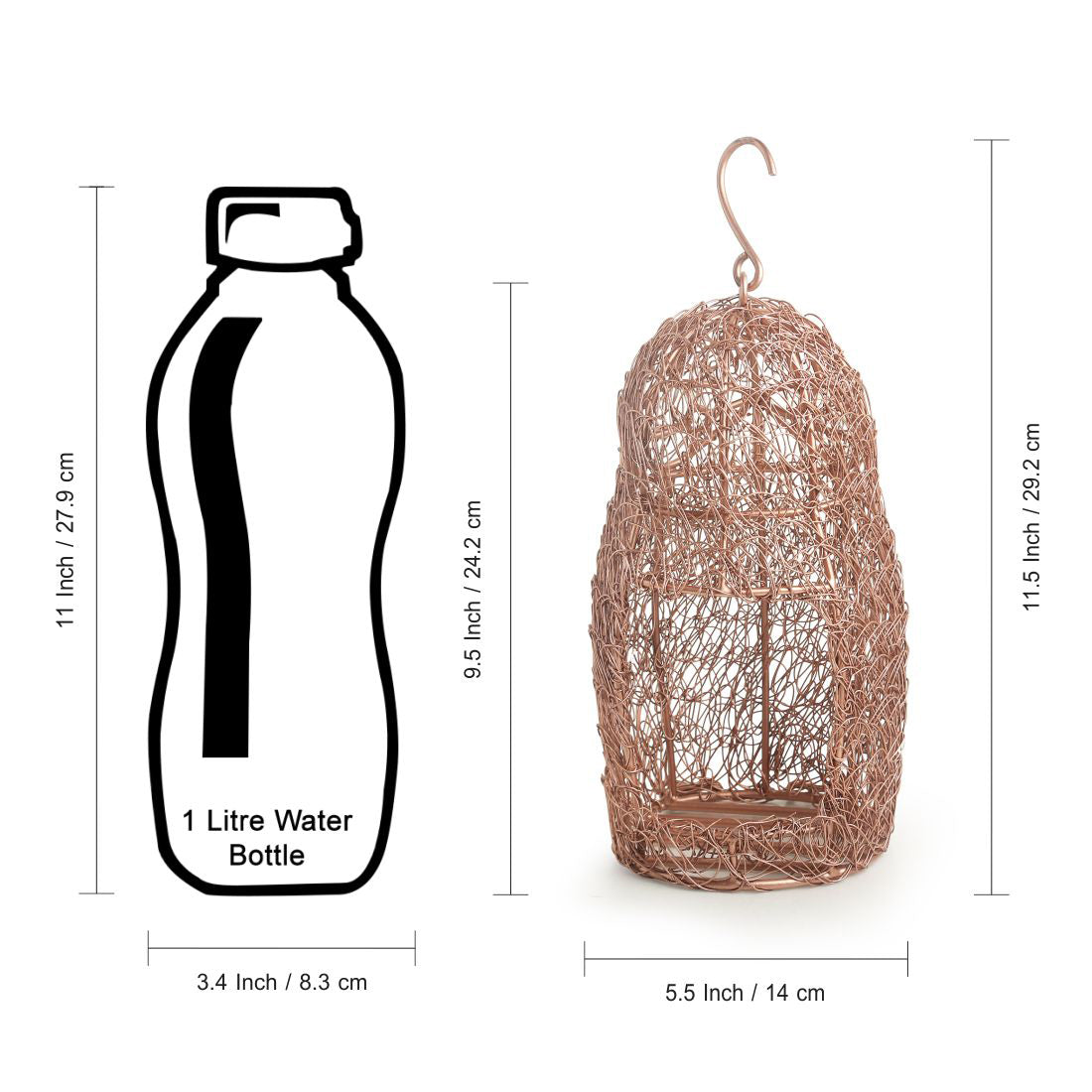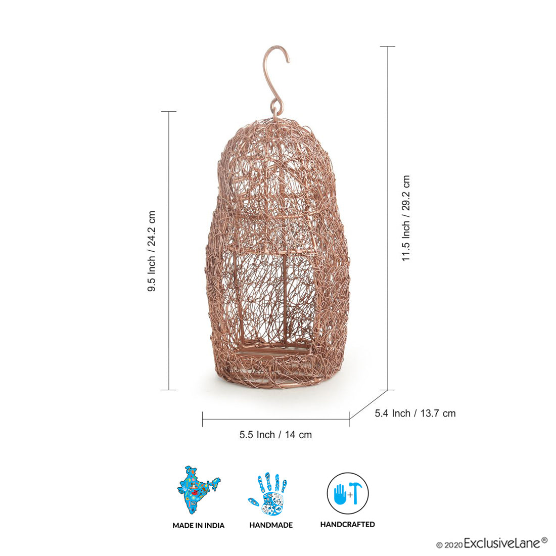 Hand-wired and hand-painted in patina style by skilled Indian artisans, the slightly aged golden finish adds depth and vintage charm. Designed to hold 4 tea-light candles, the structure also includes a durable hanging chain, making it ideal for ceiling décor and festive lighting.