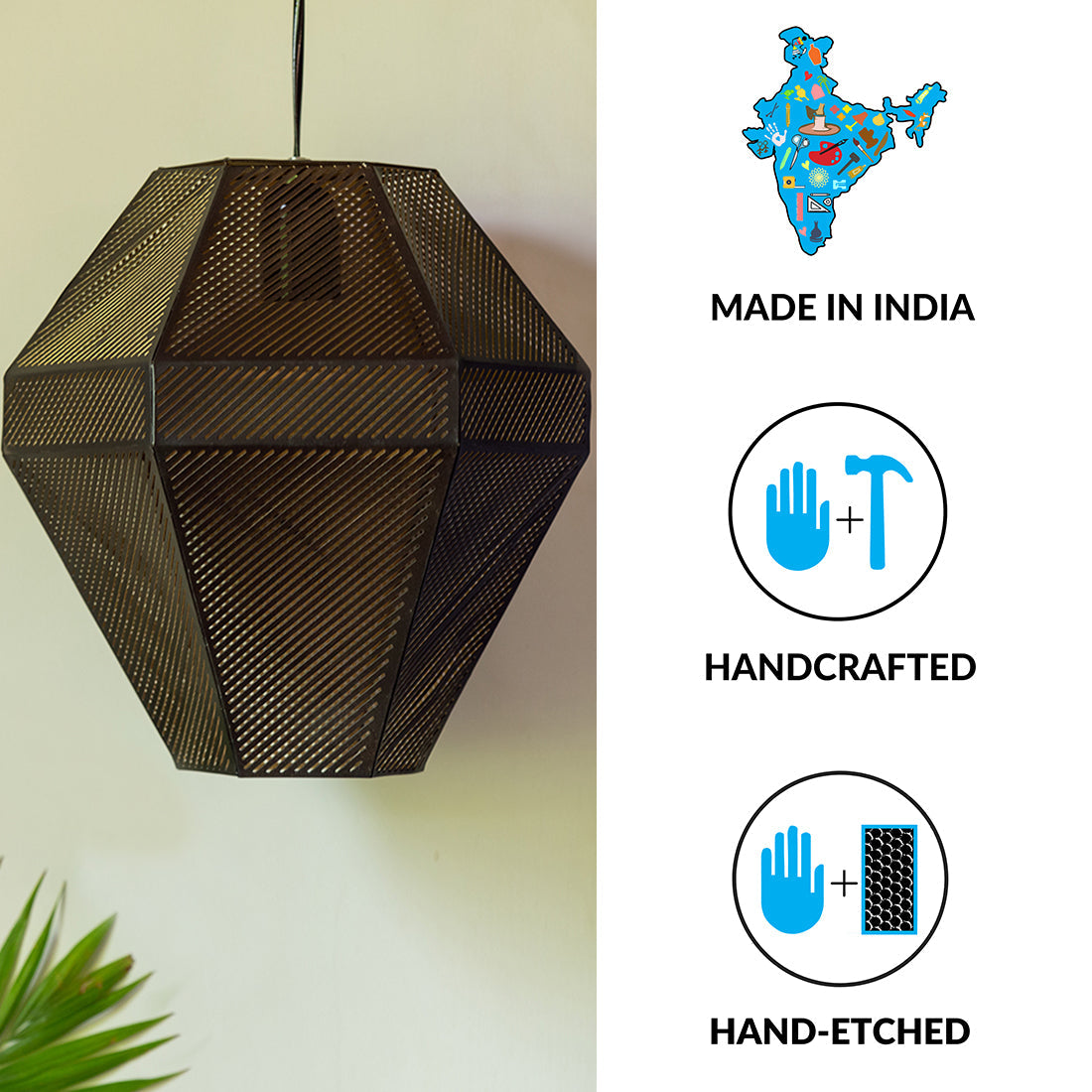 Inspired by the mathematical parallel lines that set the foundations of geometry, this pendant is all about symmetry demonstrated through classic, black metal. The vintage styling and sophisticated look create an exciting contrast, which make this pendant perfect for traditional as well as modern home interiors. This pendant has been hand crafted by Indian artisans, and is a unique lighting solution that certainly makes a statement. For the fearless and bold, this pendant through its infinitely running parallel lines that signify eternity is a one of a kind work of art. It also makes for a great gift for your loved ones.