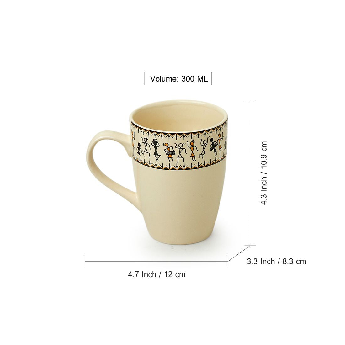 - The mugs have black Warli decals exquisitely printed onto them depicting everyday lives of the Warli tribe.