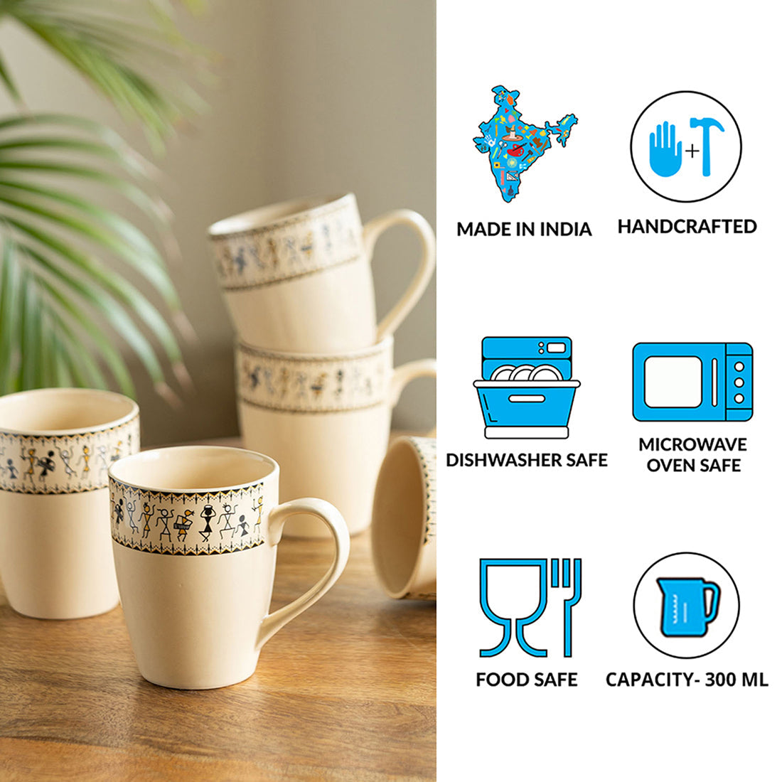 - The mugs belong to the 'Whispers of Warli' collection.