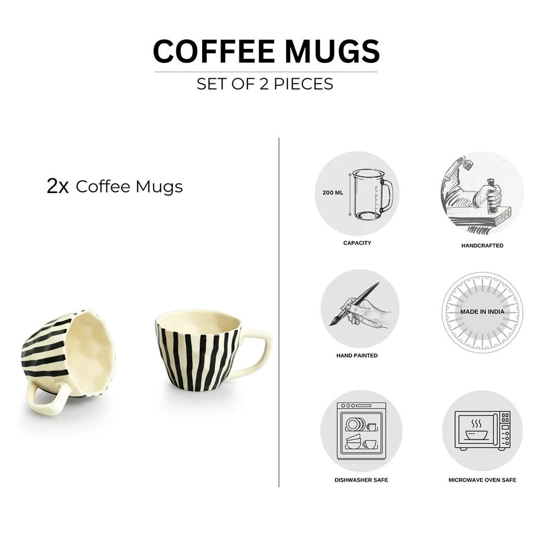 The ‘Zebra Pattern’ is a set of 2 tea & coffee mugs of 200 ml each that have been masterfully handcrafted & hand-painted in ceramic by skilled indian artisans. These mugs are perfect for sharing tea or coffee with your loved ones or even cold beverages and juices. This is also an ideal gift for housewarmings and the festive season. The coffee mugs are microwave and dishwasher safe.