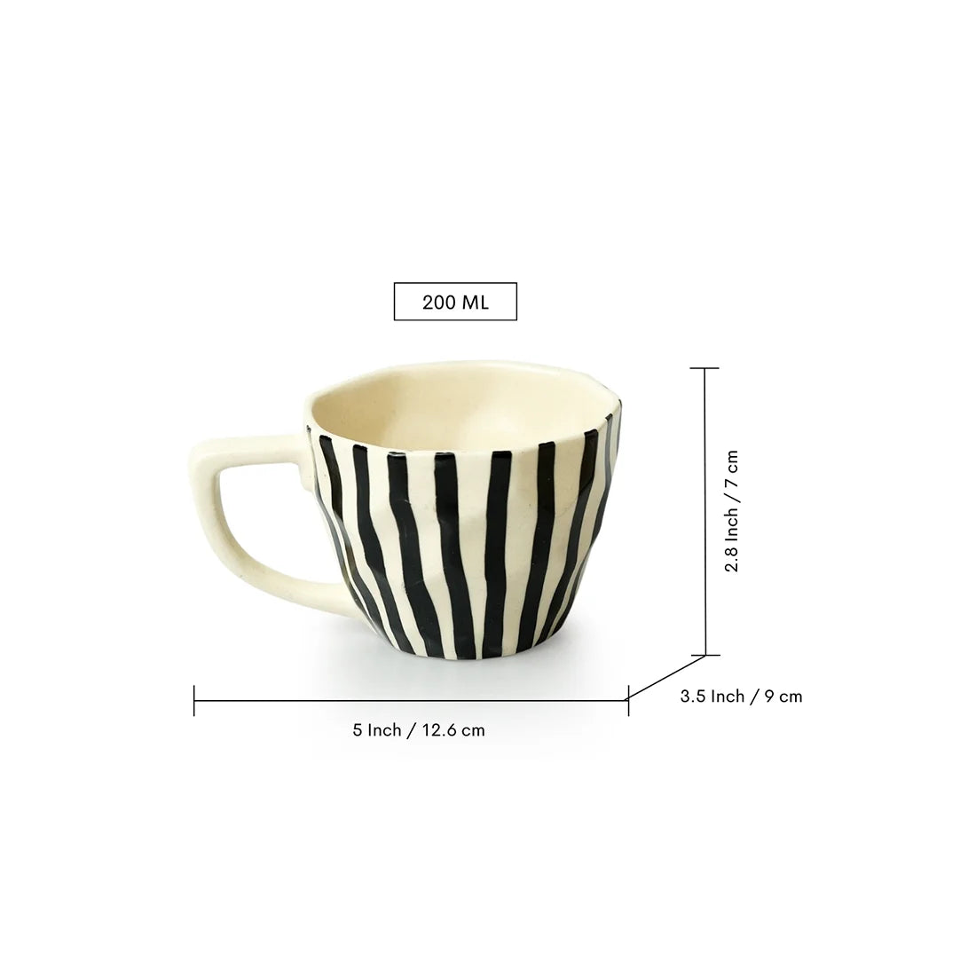 - Depicts 'zebra pattern' i.e. contrasting black & white stripes beautifully hand-painted on a coffee mug.